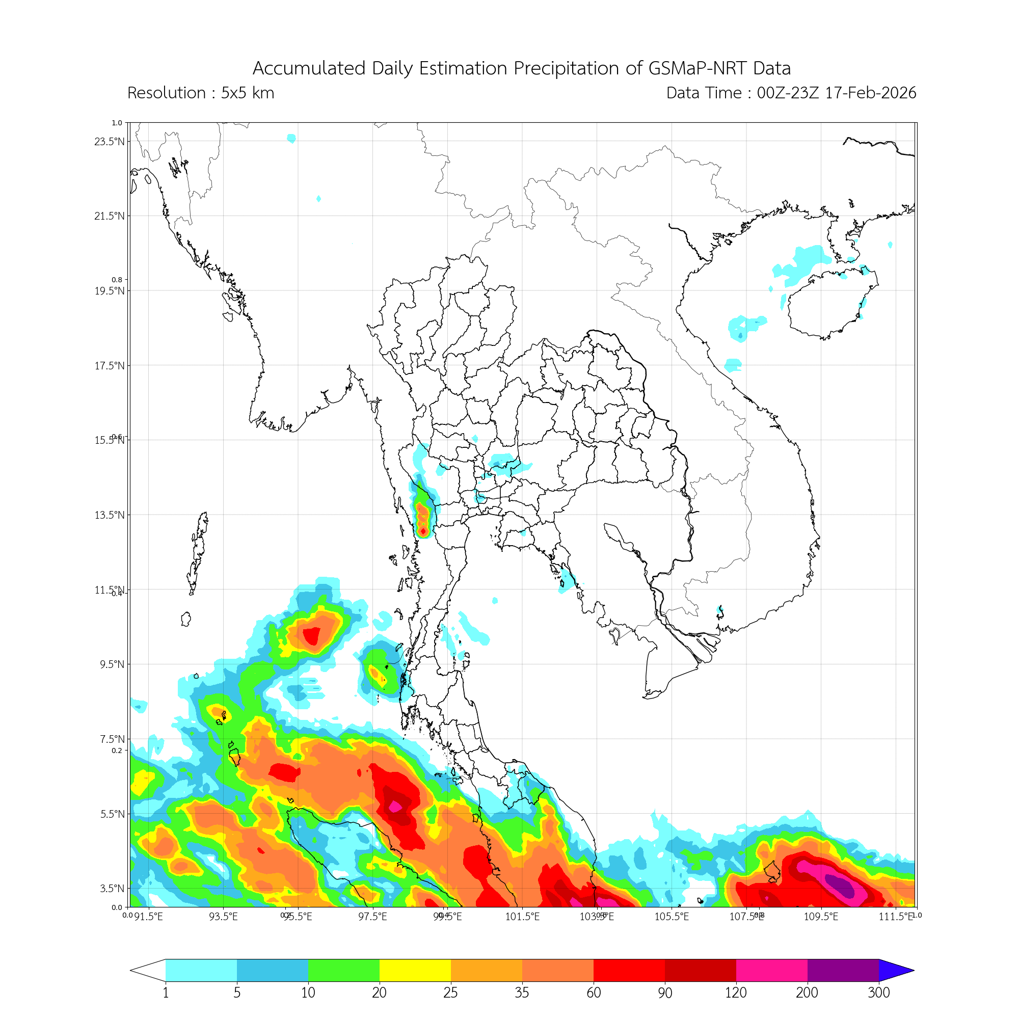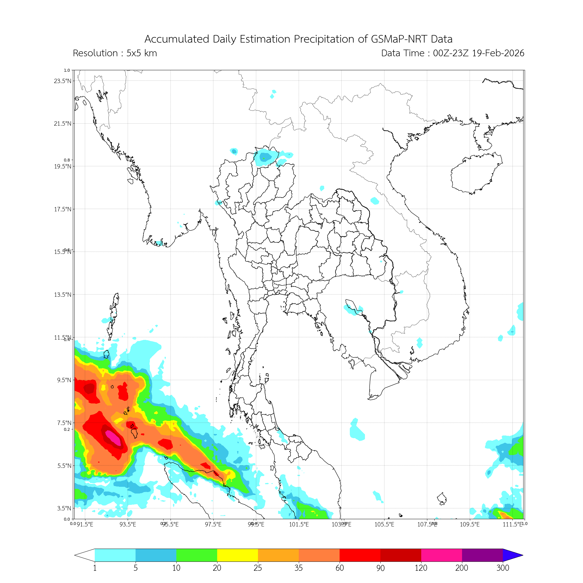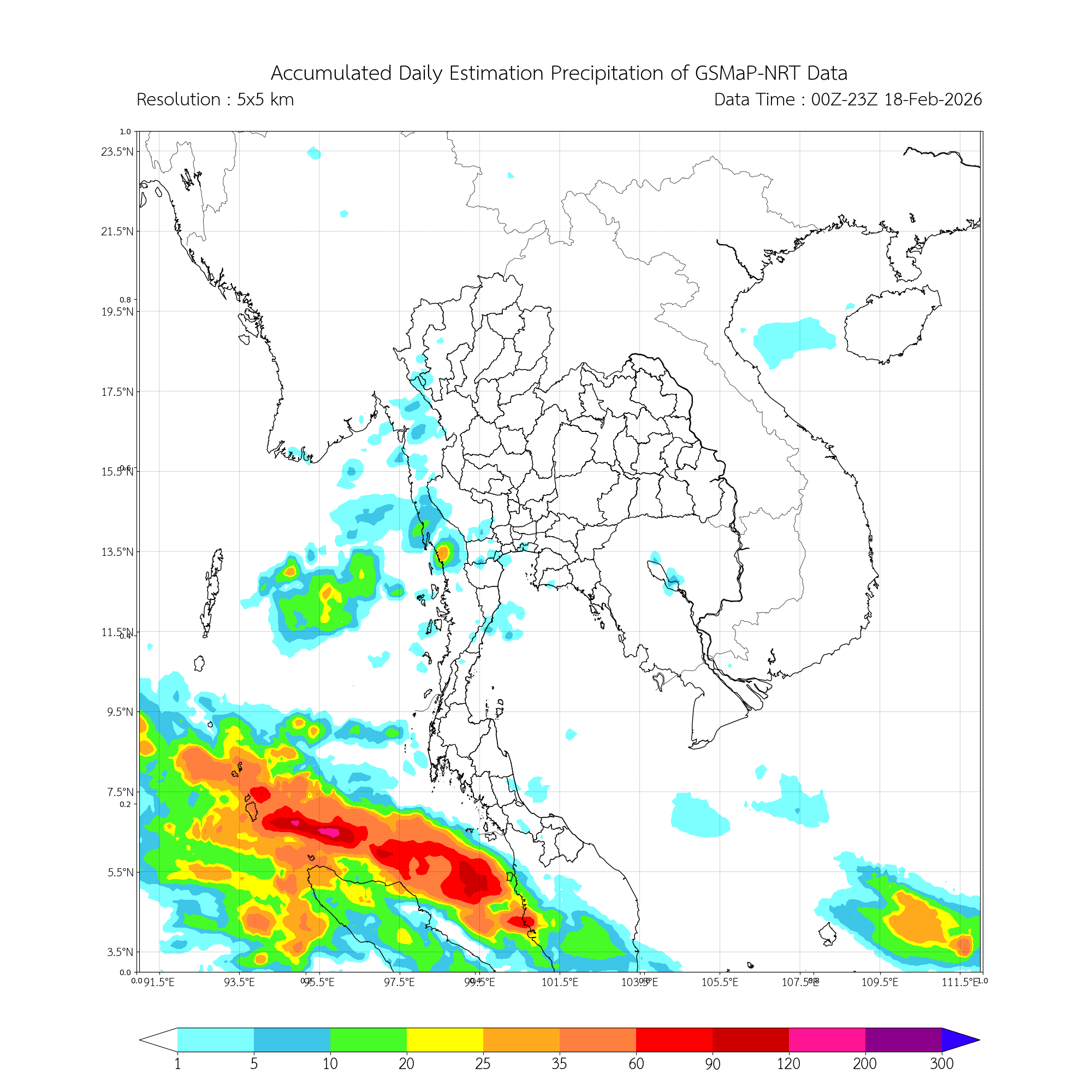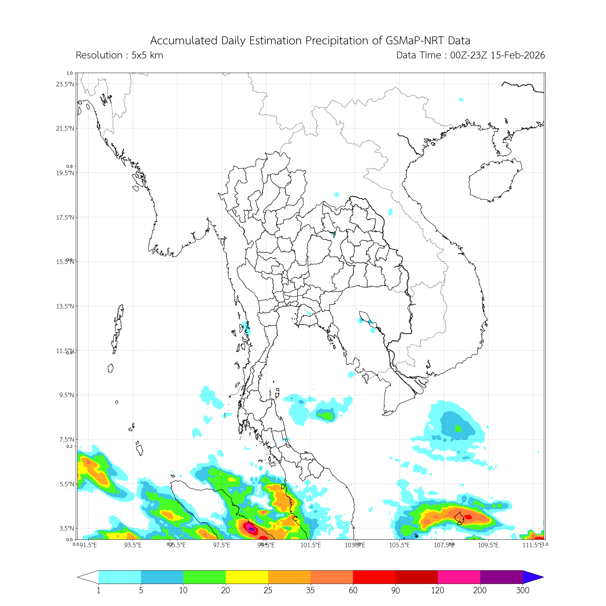 ปริมาณฝนสะสมรายวันจากการประมาณค่าฝนด้วยดาวเทียมบริเวณประเทศไทยและใกล้เคียง