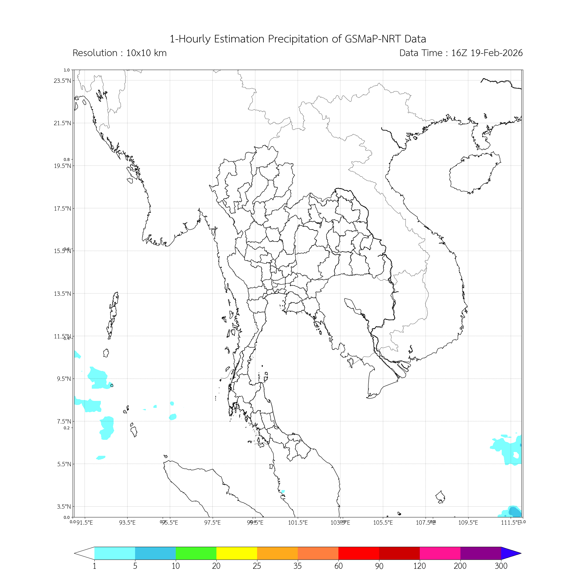 ปริมาณค่าฝนรายชั่วโมงจากการประมาณค่าฝนด้วยดาวเทียมอุตุนิยมวิทยา