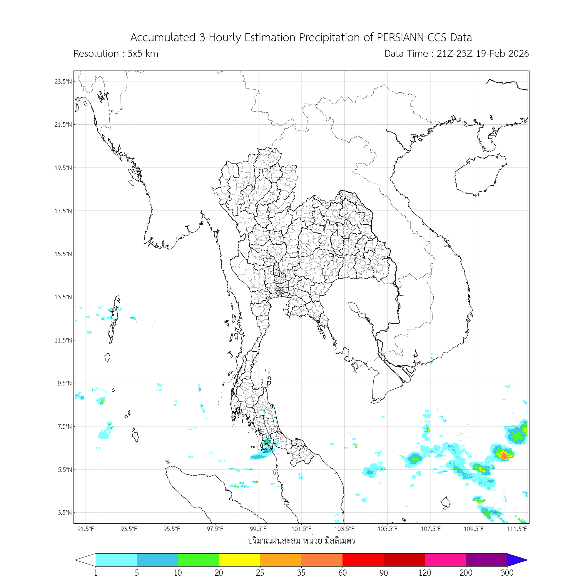 ค่าประมาณฝนสะสม 3 ชั่วโมง จากดาวเทียมPERSIANN