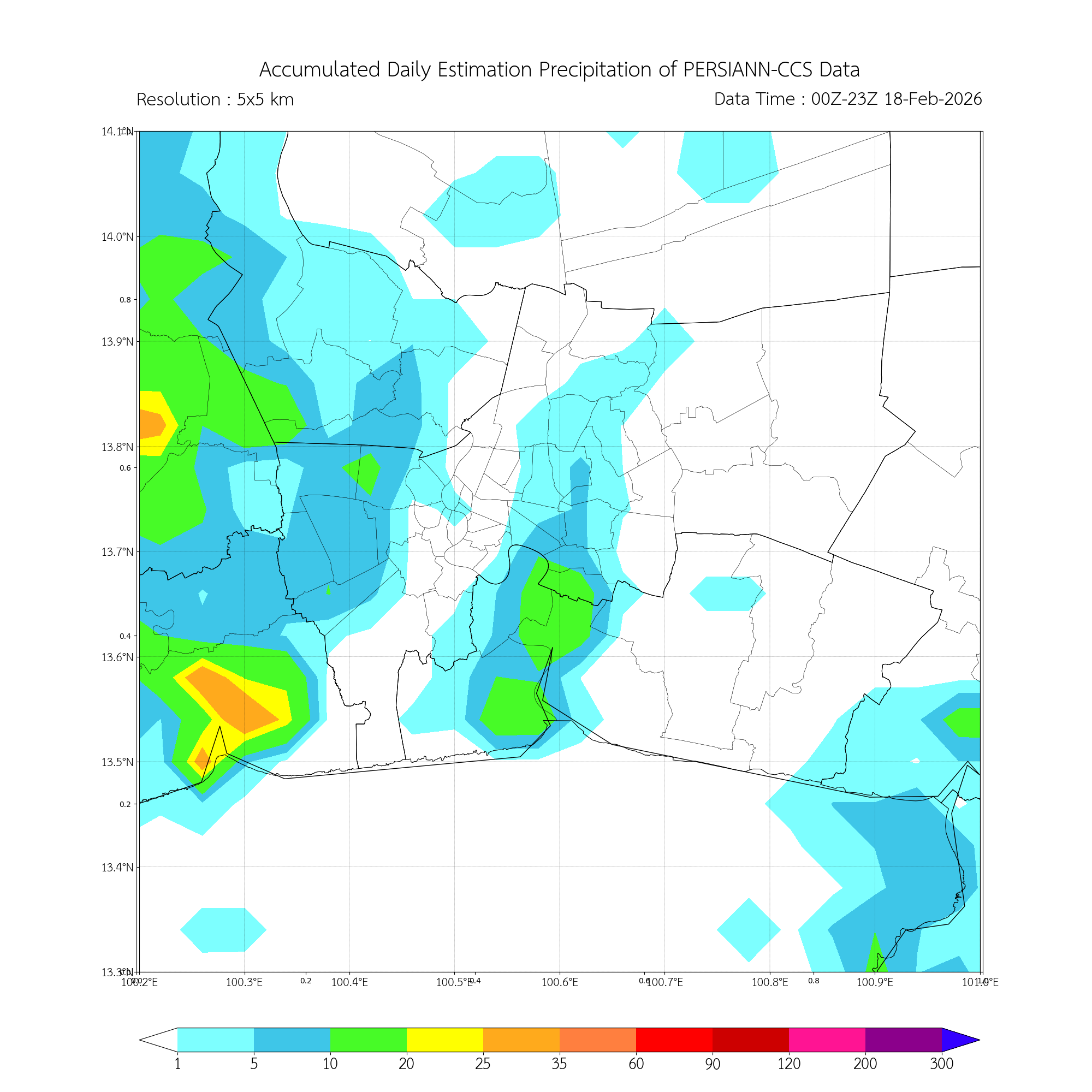 ปริมาณฝนสะสมรายวันจากการประมาณค่าฝนด้วยดาวเทียมบริเวณกรุงเทพและปริมณฑล