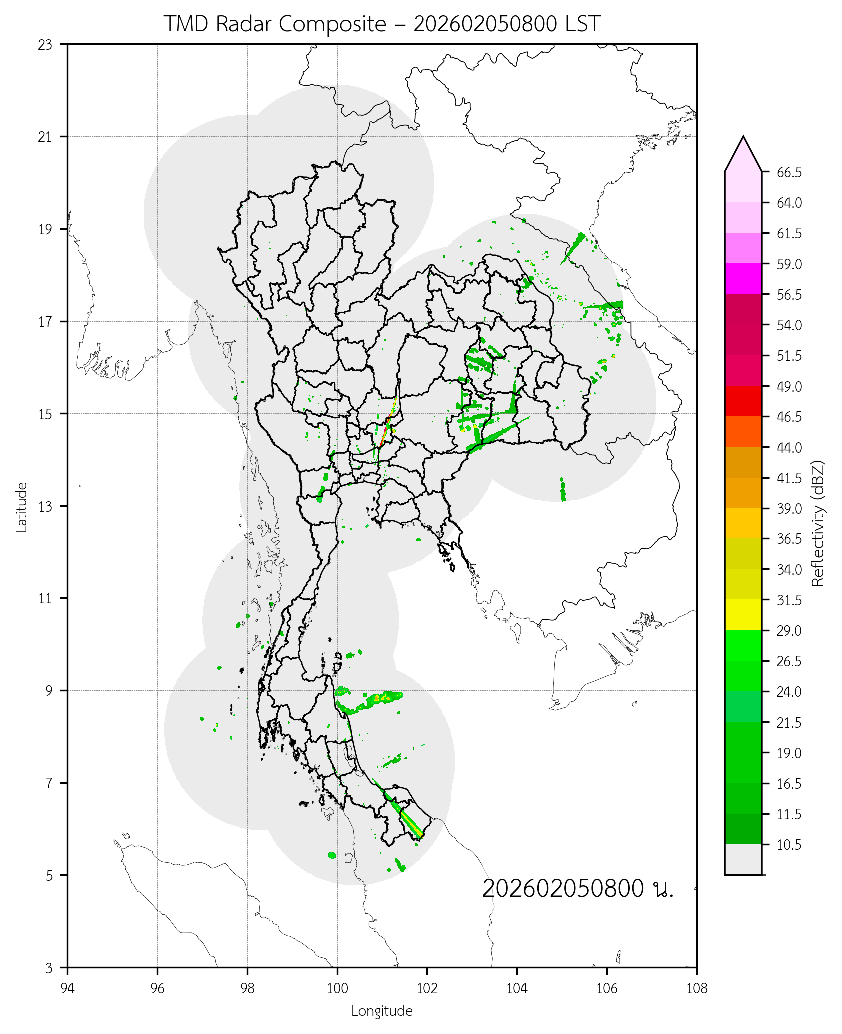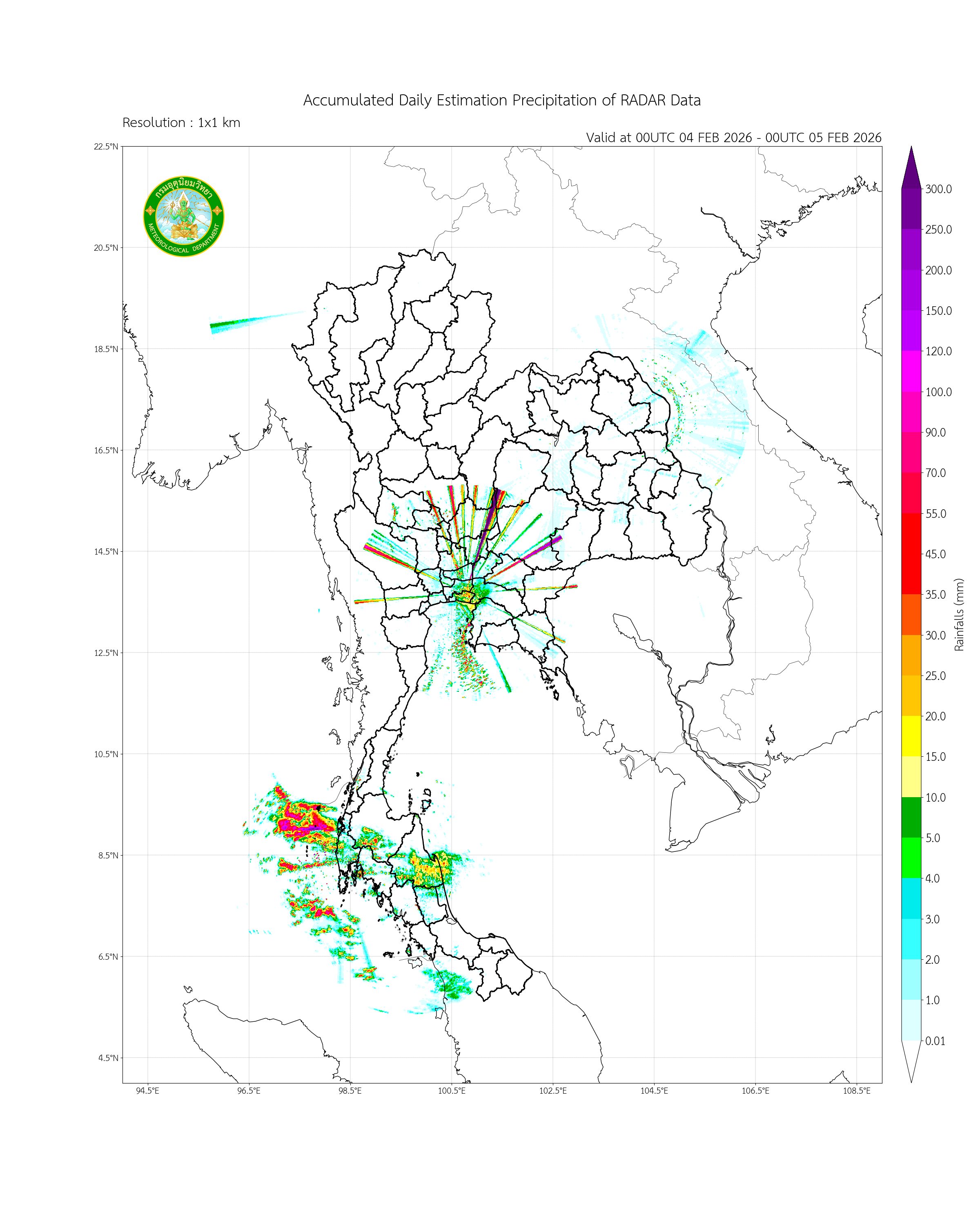 ปริมาณฝนสะสมรายวันจากเรดาร์ตรวจอากาศบริเวณประเทศไทยและใกล้เคียง