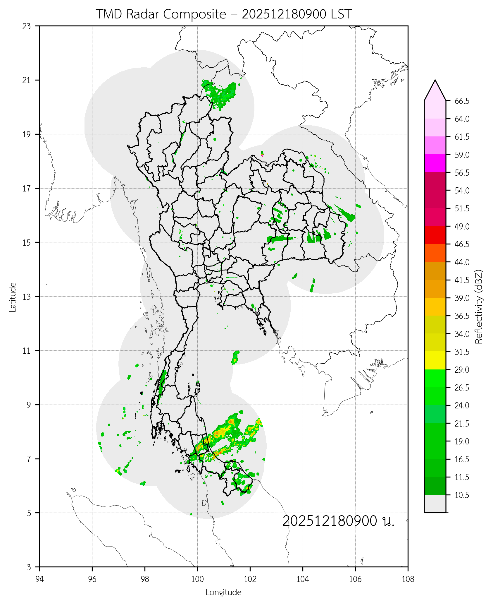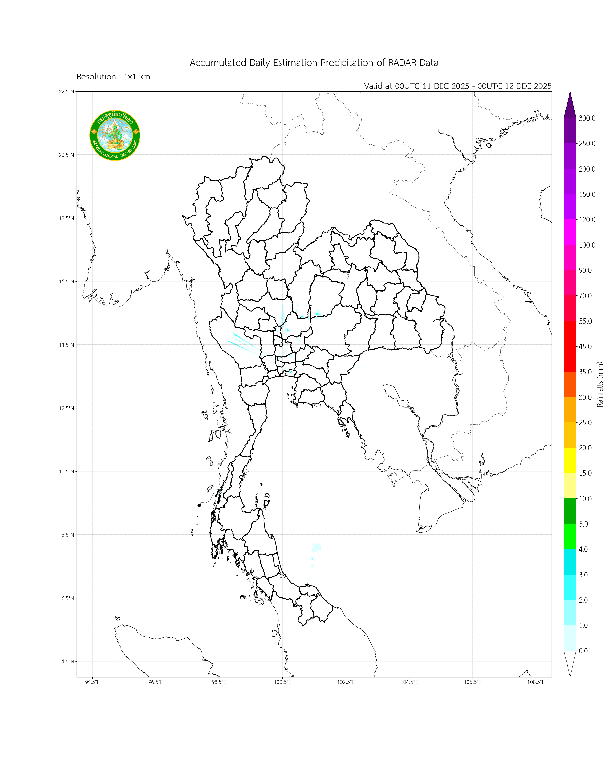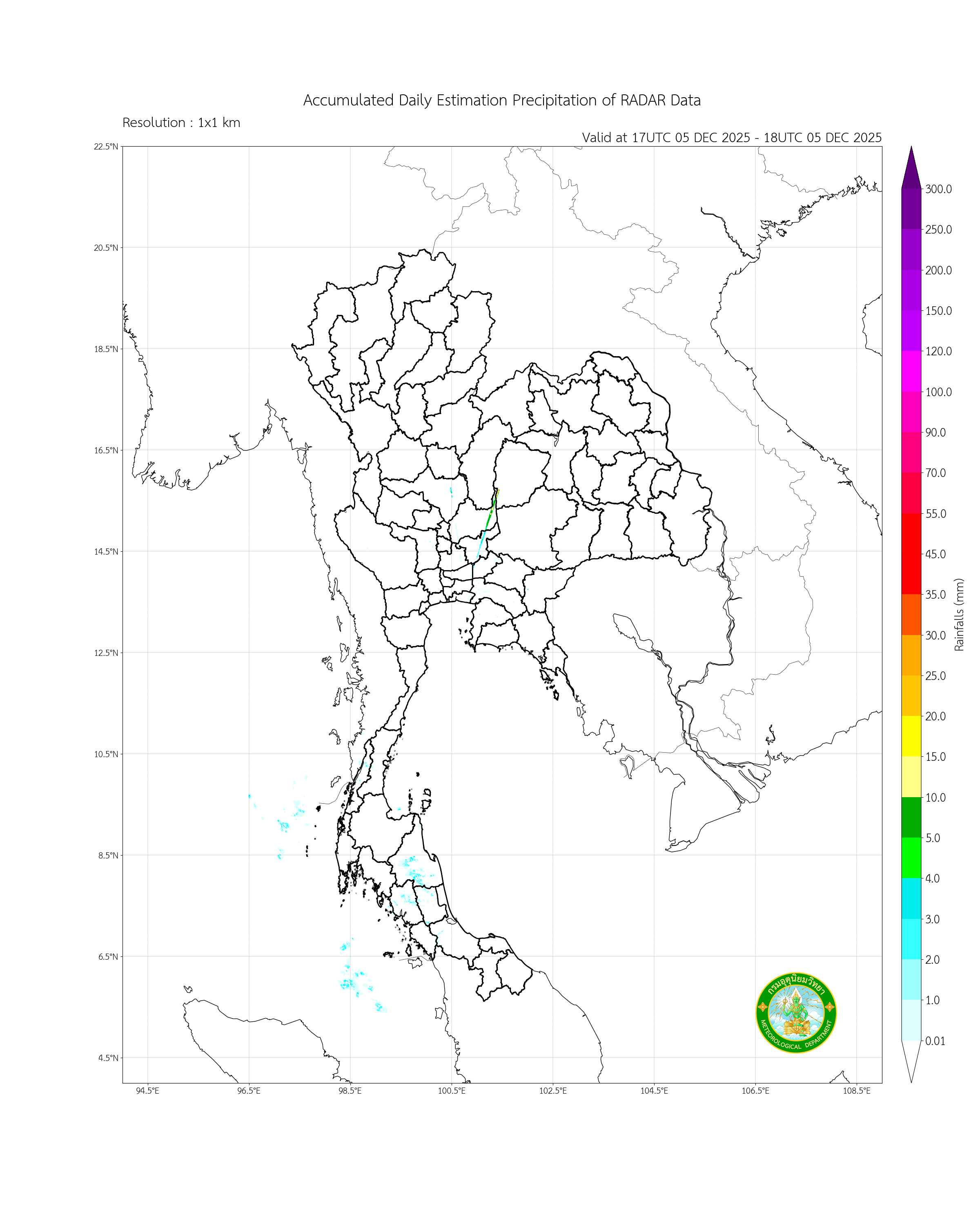 ปริมาณฝนสะสมรายวันจากเรดาร์ตรวจอากาศบริเวณประเทศไทยและใกล้เคียง