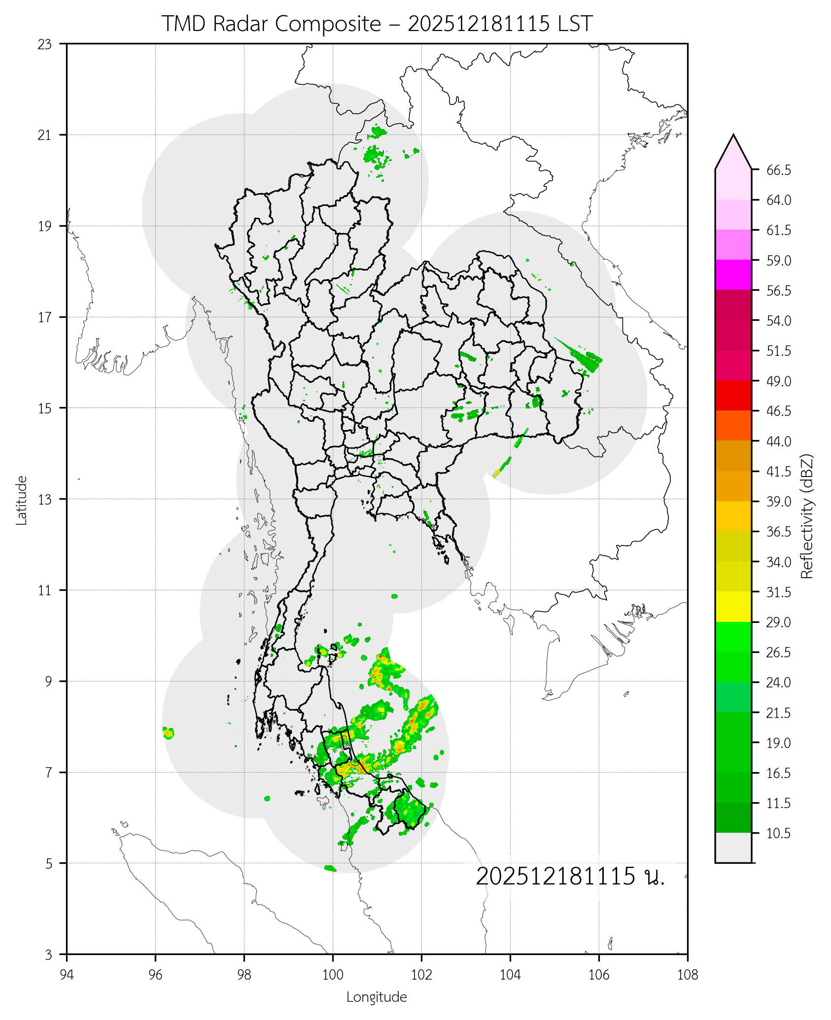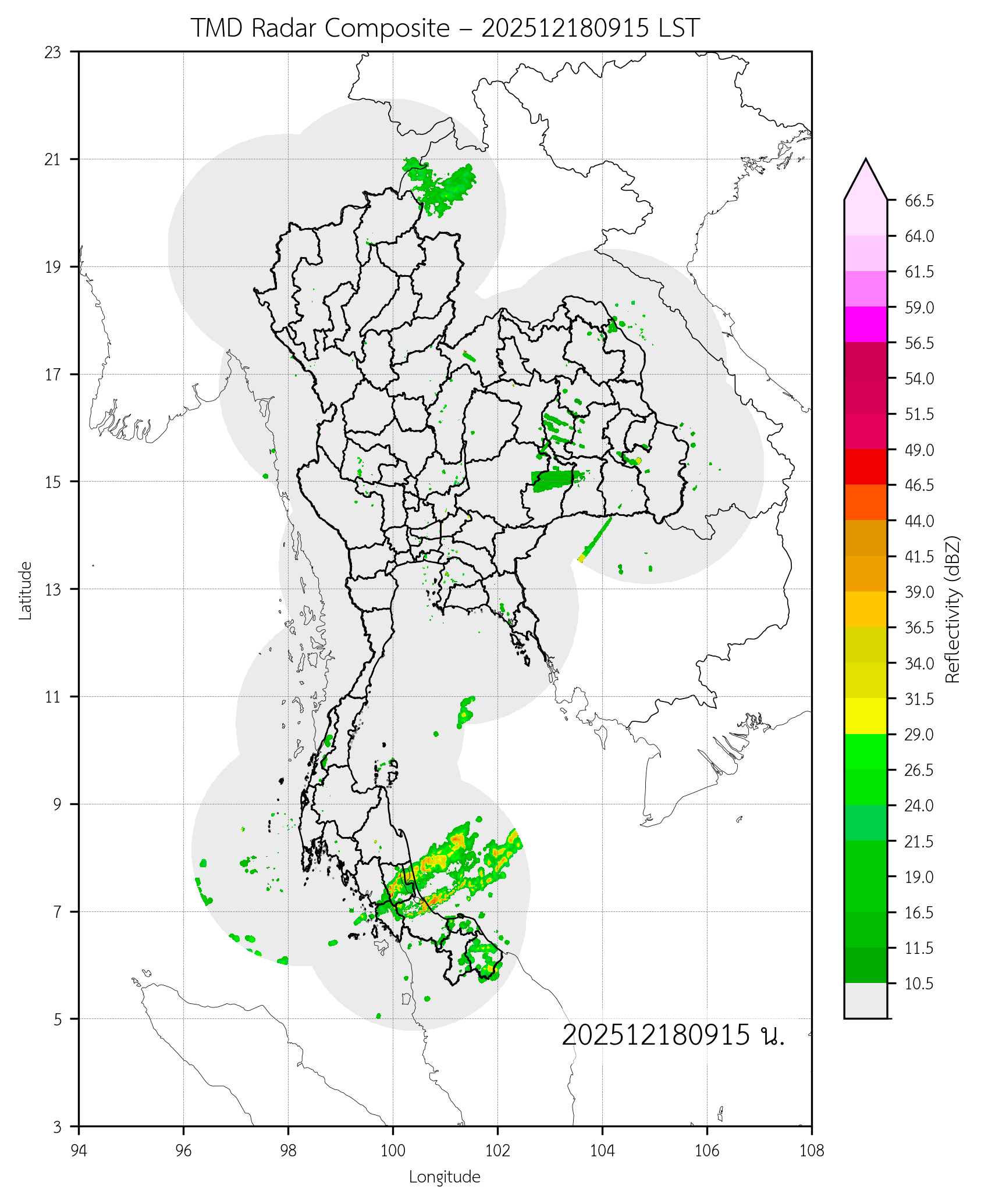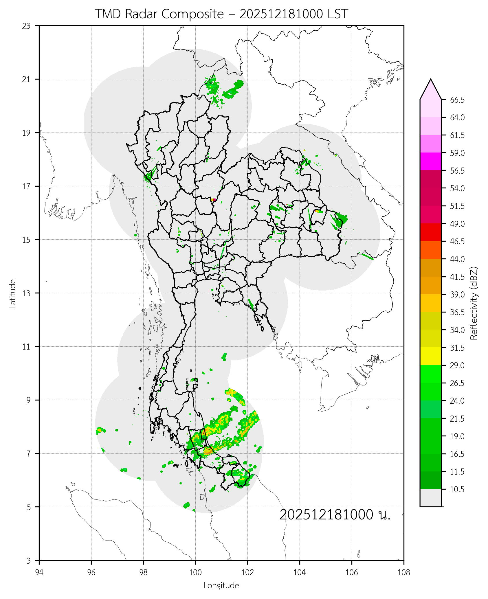 ปริมาณฝนสะสมรายวันจากเรดาร์ตรวจอากาศบริเวณประเทศไทยและใกล้เคียง