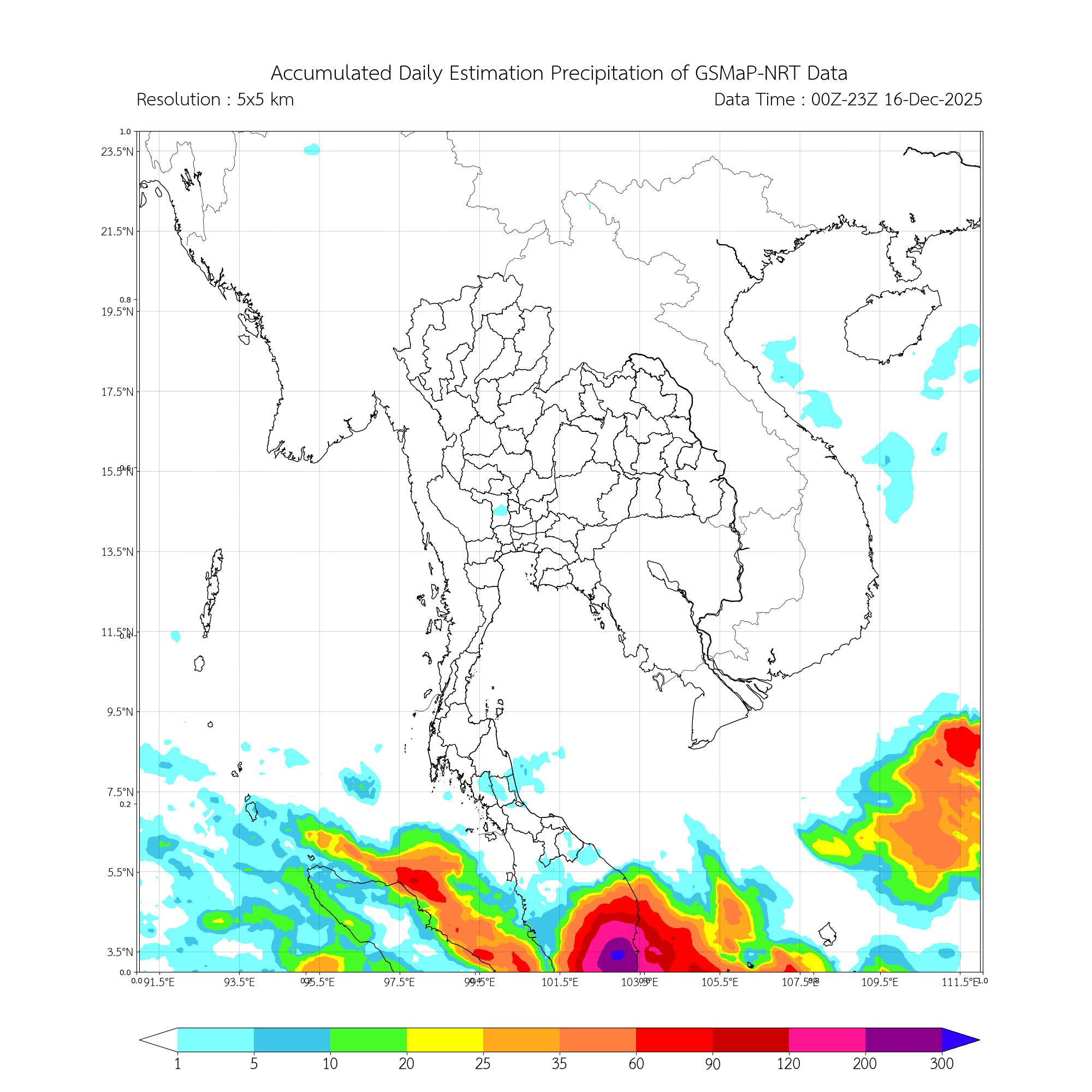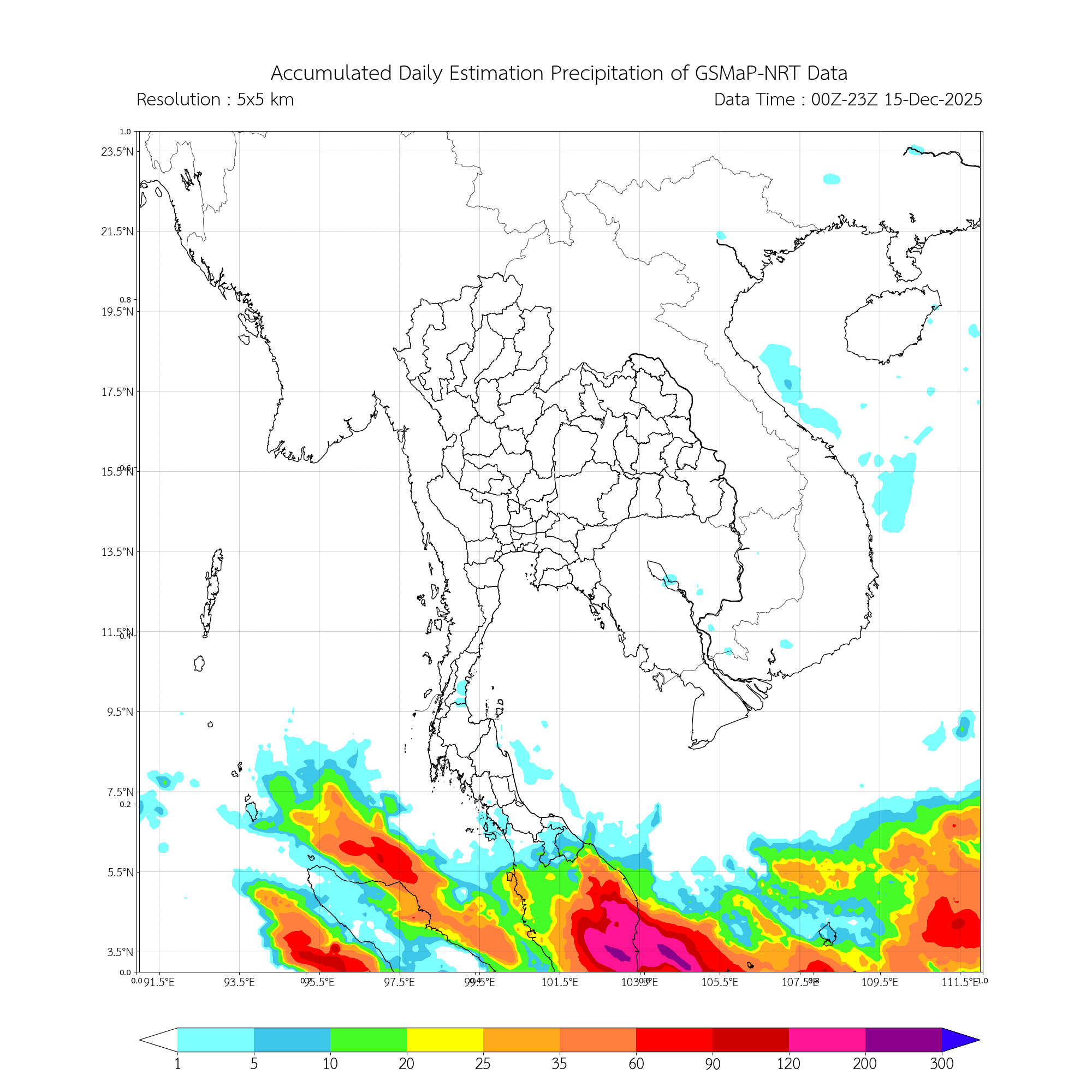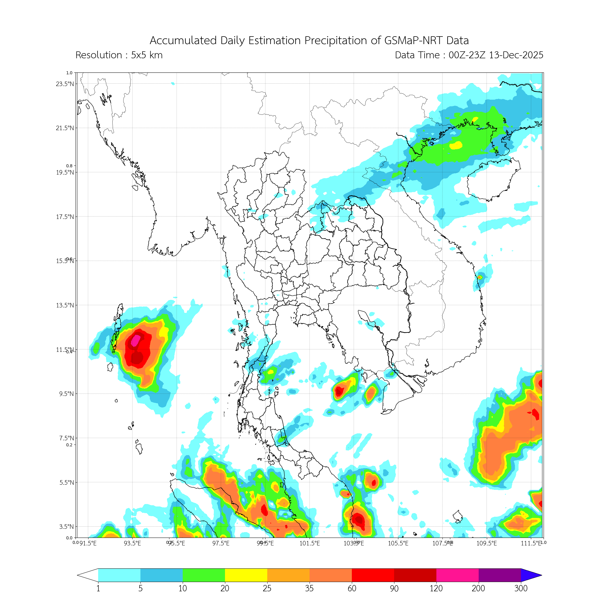ปริมาณฝนสะสมรายวันจากการประมาณค่าฝนด้วยดาวเทียมบริเวณประเทศไทยและใกล้เคียง