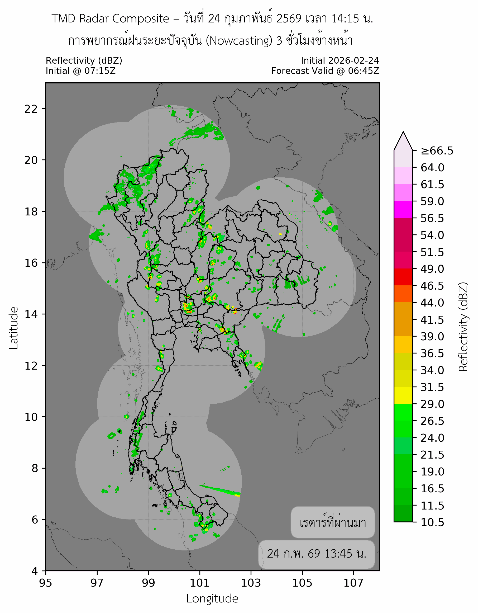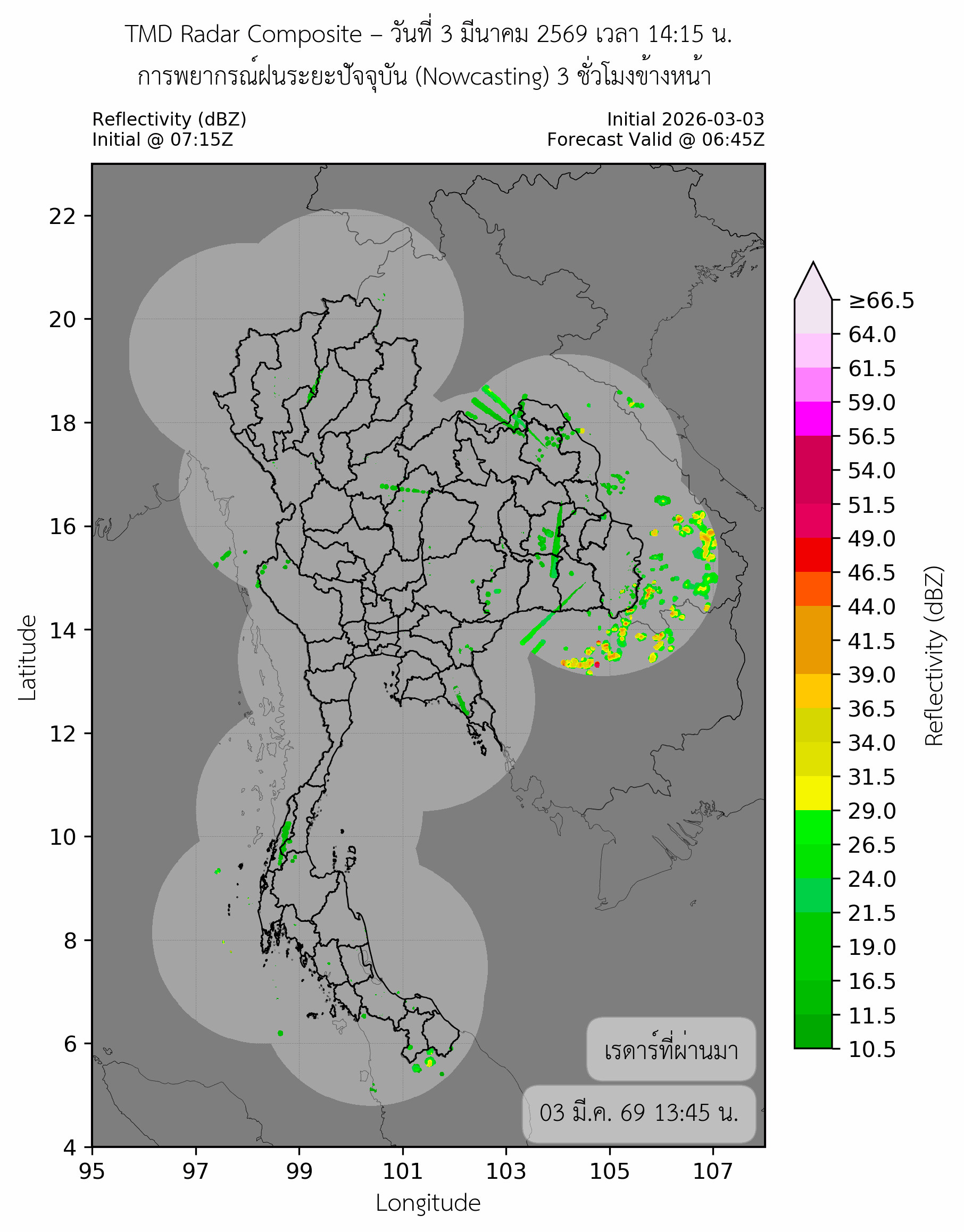 ปริมาณฝนสะสมรายวันจากเรดาร์ตรวจอากาศบริเวณประเทศไทยและใกล้เคียง