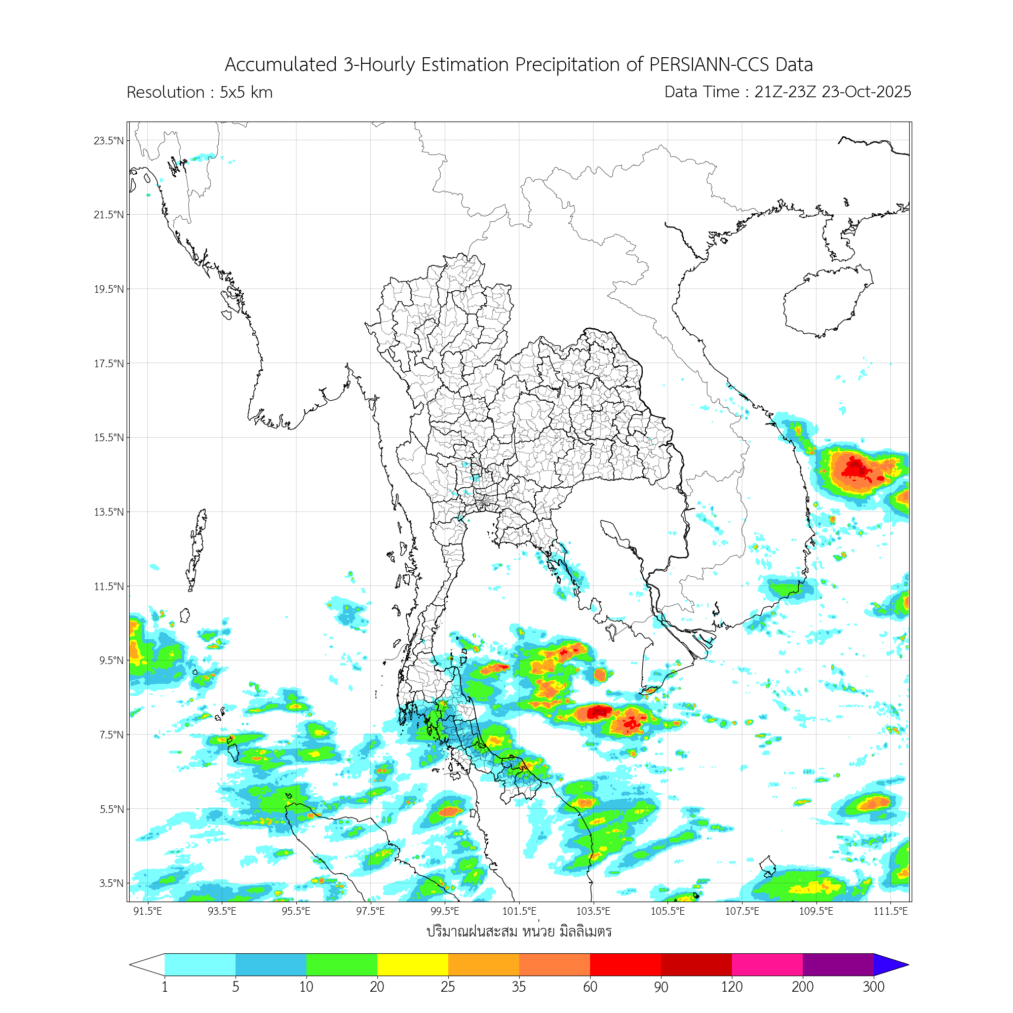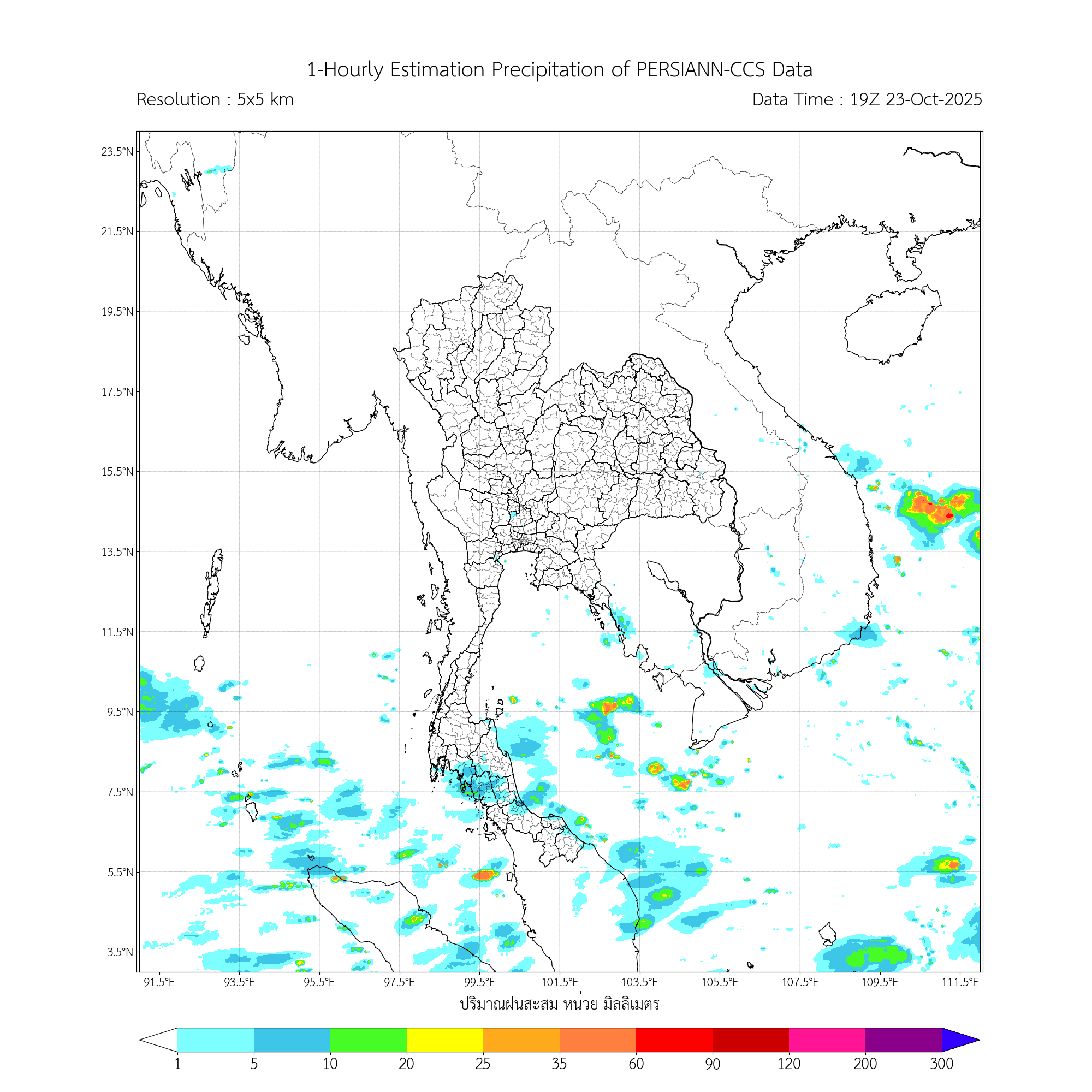 การประมาณค่าฝนจากดาวเทียม เมื่อวาน (23/10/2025)