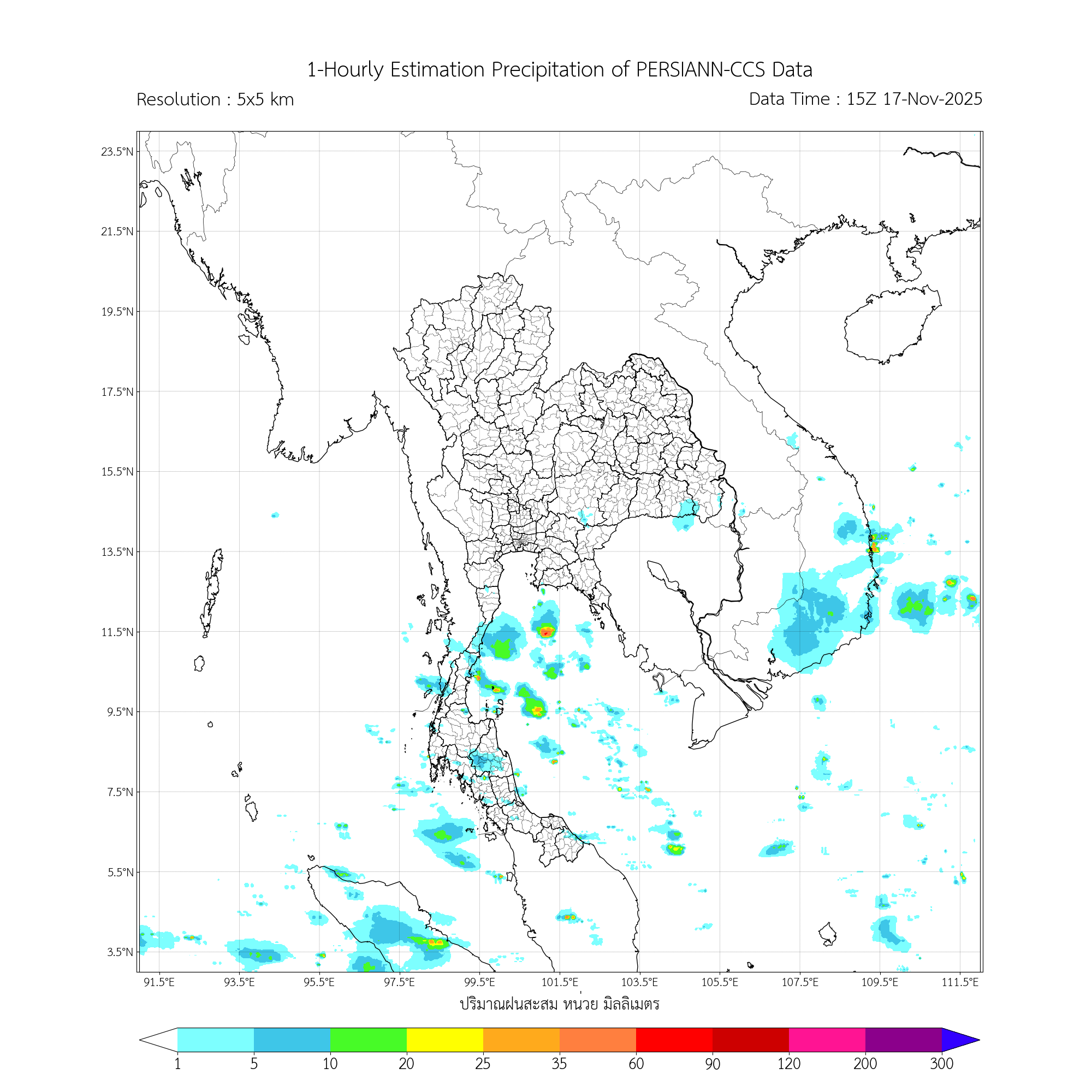 การประมาณค่าฝนจากดาวเทียม เมื่อวาน (17/11/2025)