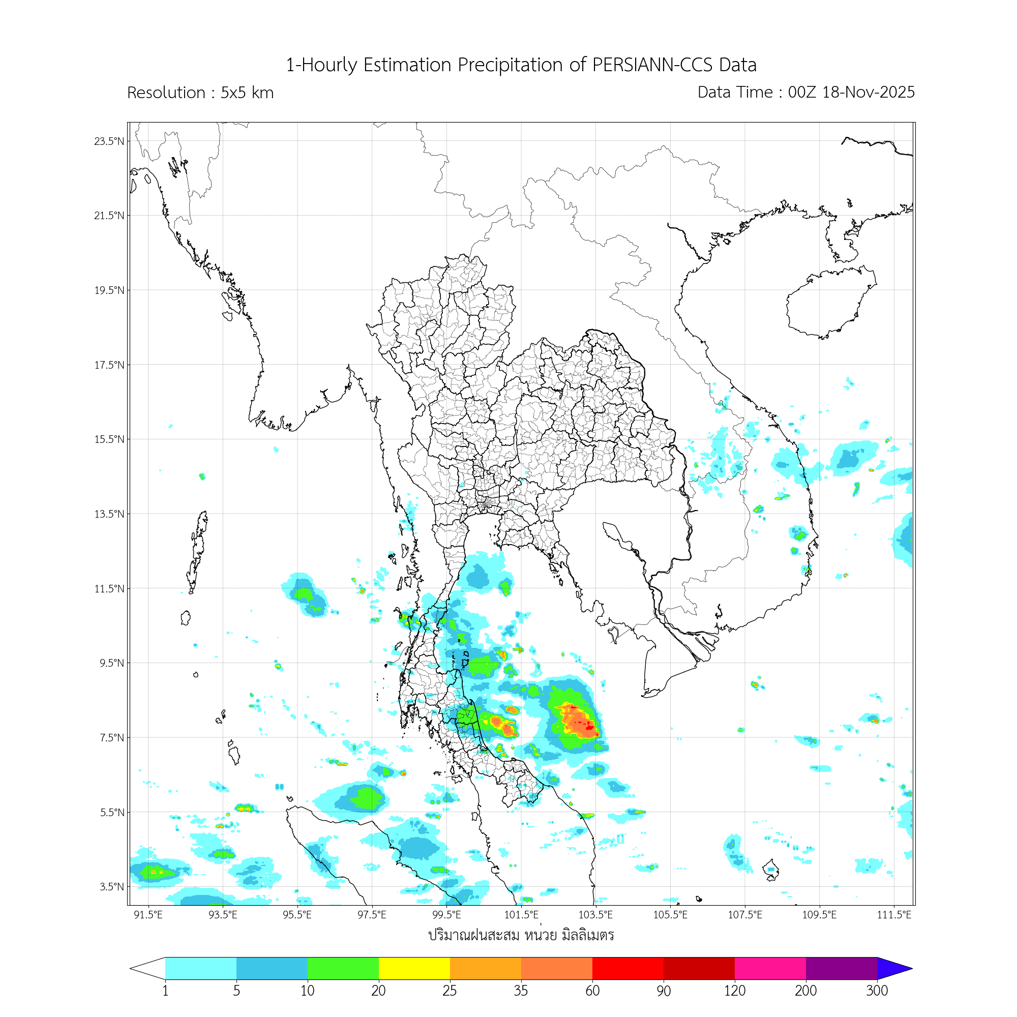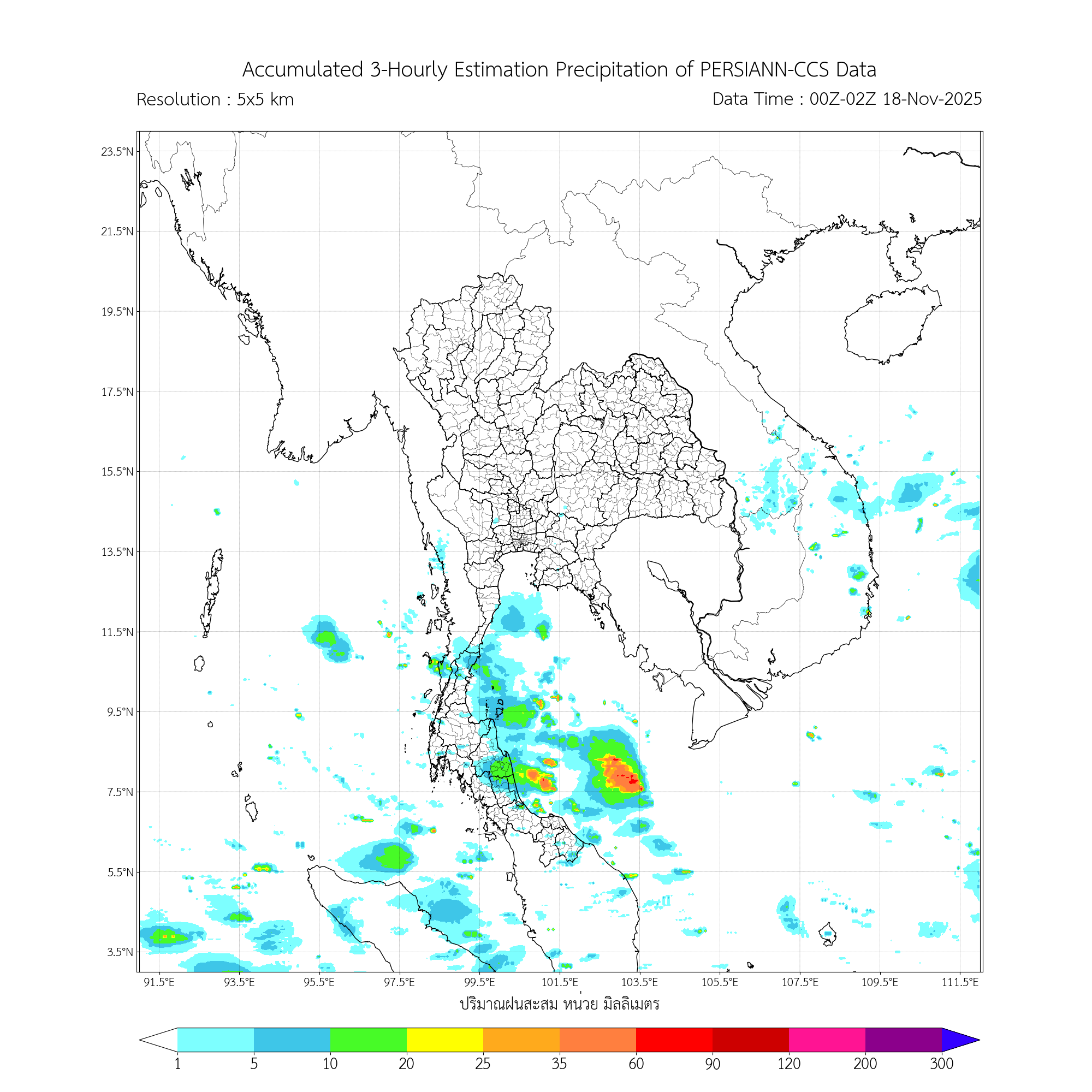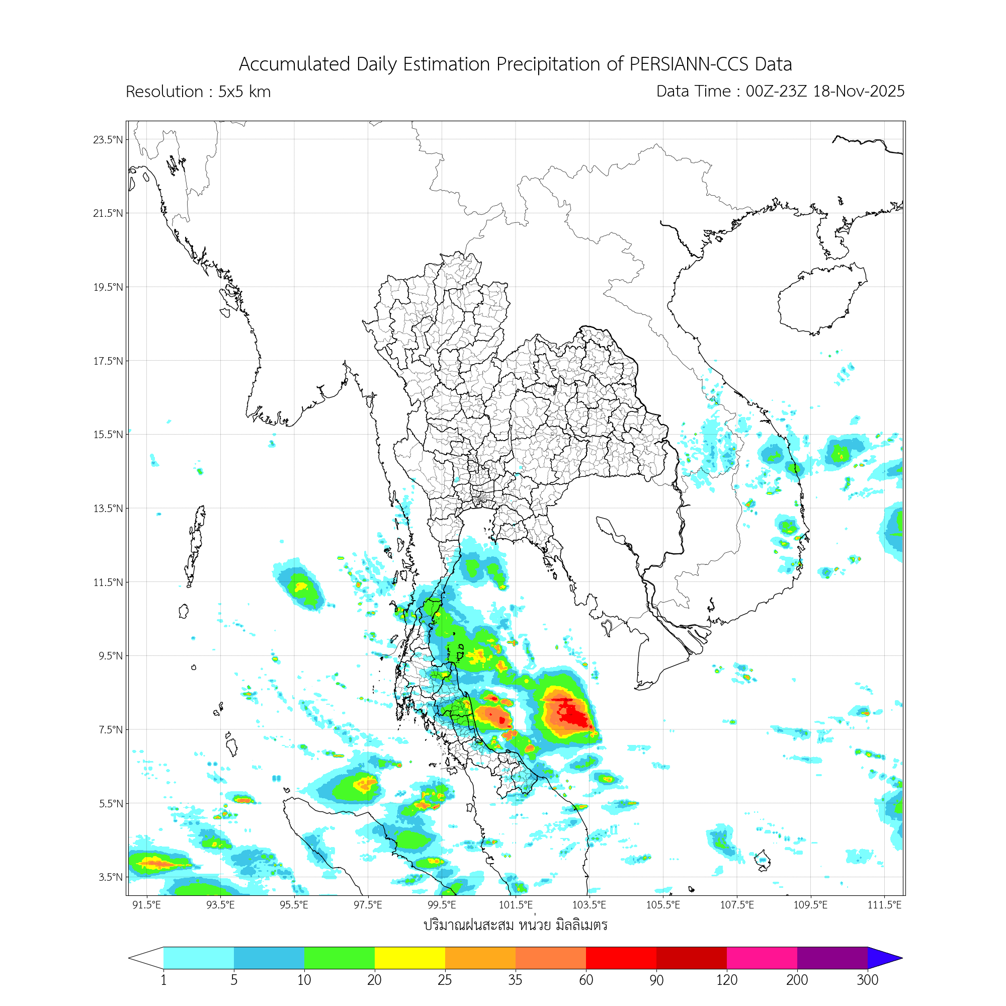 การประมาณค่าฝนจากดาวเทียม เมื่อวาน (17/11/2025)