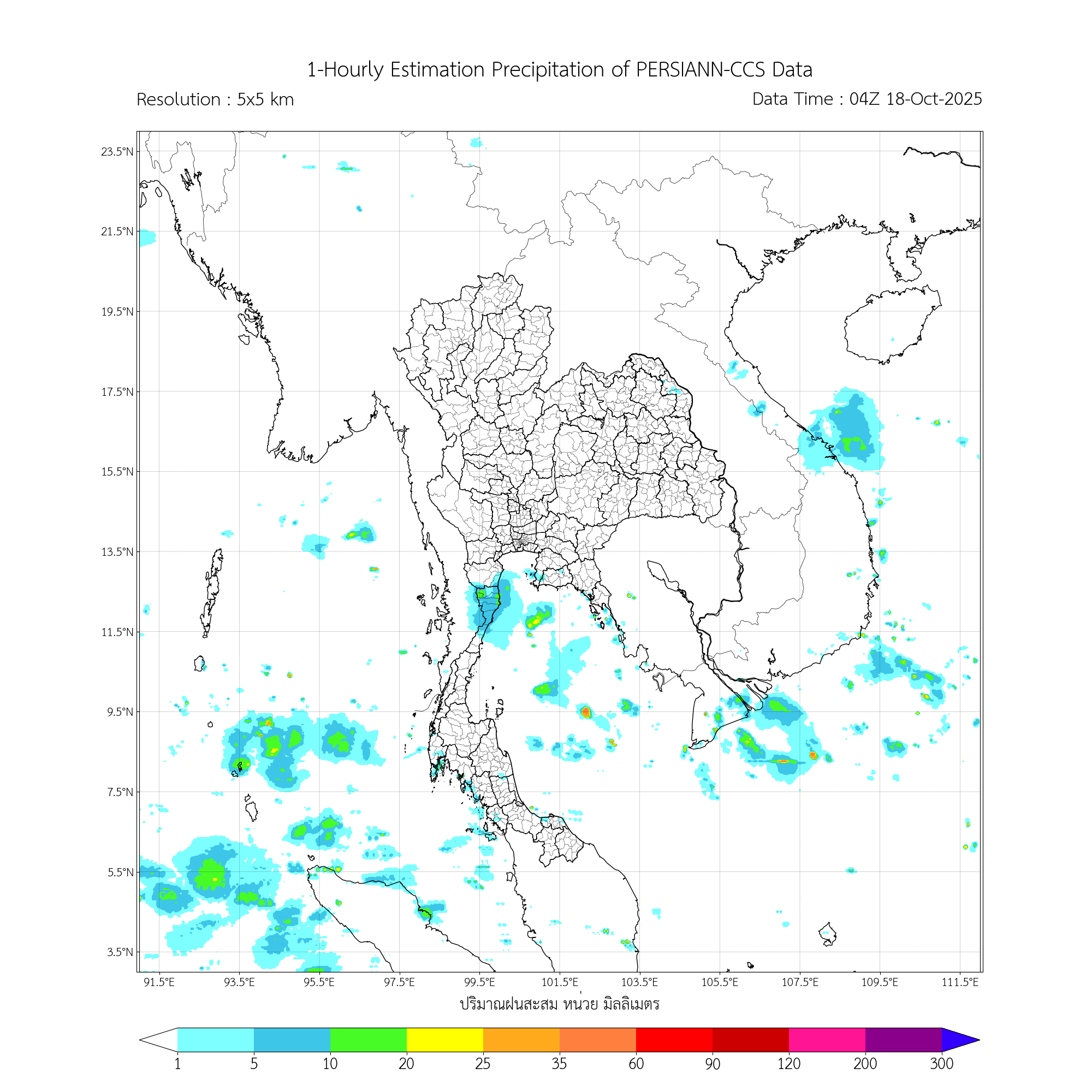 การประมาณค่าฝนจากดาวเทียม เมื่อวาน (17/10/2025)