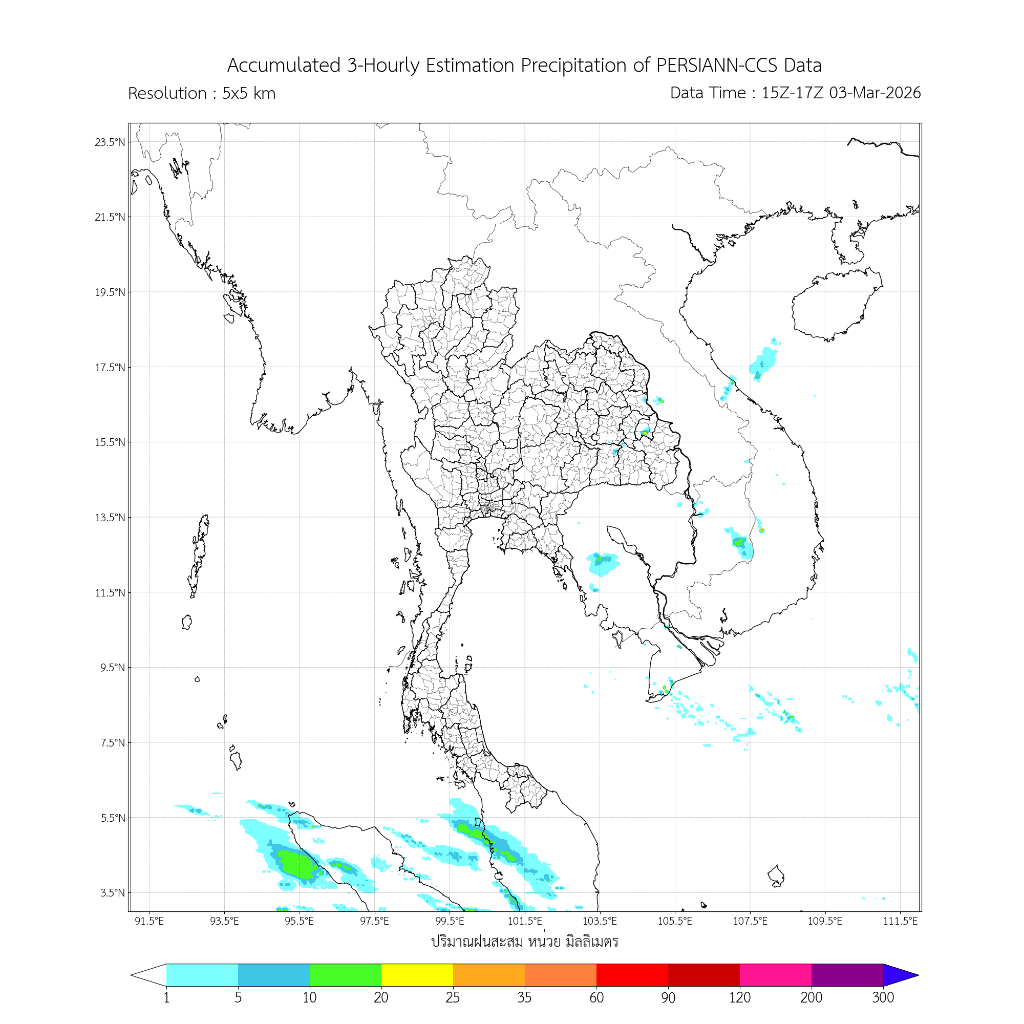 ค่าประมาณฝนสะสม 3 ชั่วโมง จากดาวเทียมอุตุนิยมวิทยา