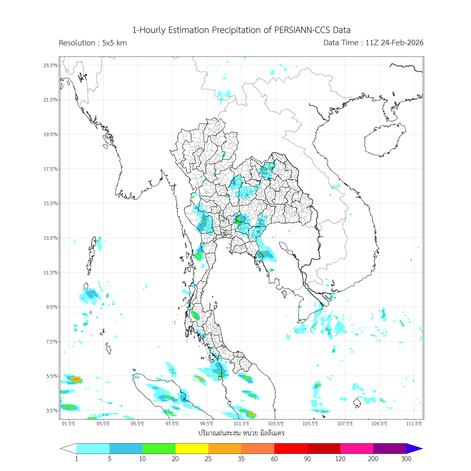 การประมาณค่าฝนจากดาวเทียม เมื่อวาน (23/02/2026)