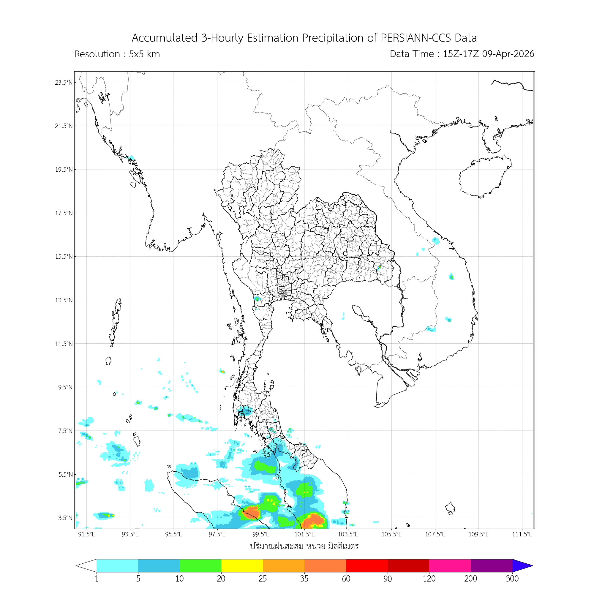 ค่าประมาณฝนสะสม 3 ชั่วโมง จากดาวเทียมอุตุนิยมวิทยา