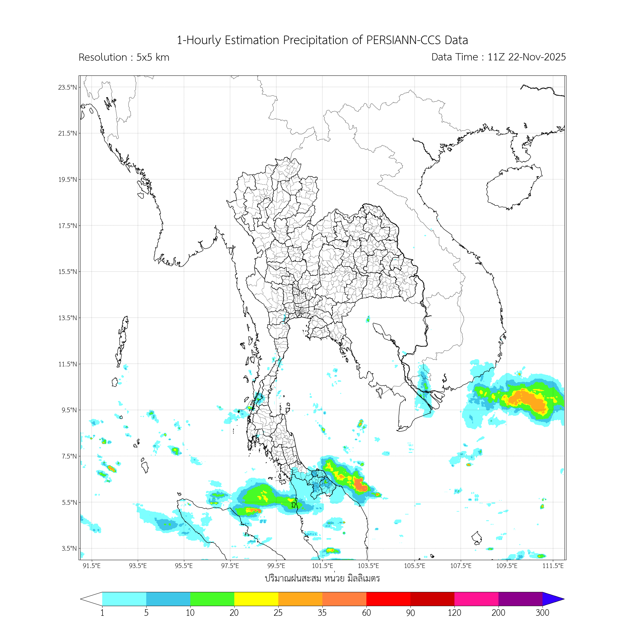 การประมาณค่าฝนจากดาวเทียม เมื่อวาน (21/11/2025)