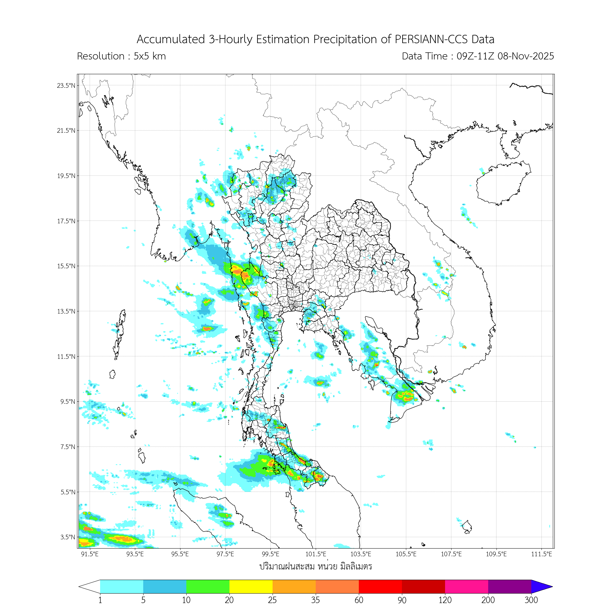ค่าประมาณฝนสะสม 3 ชั่วโมง จากดาวเทียมอุตุนิยมวิทยา