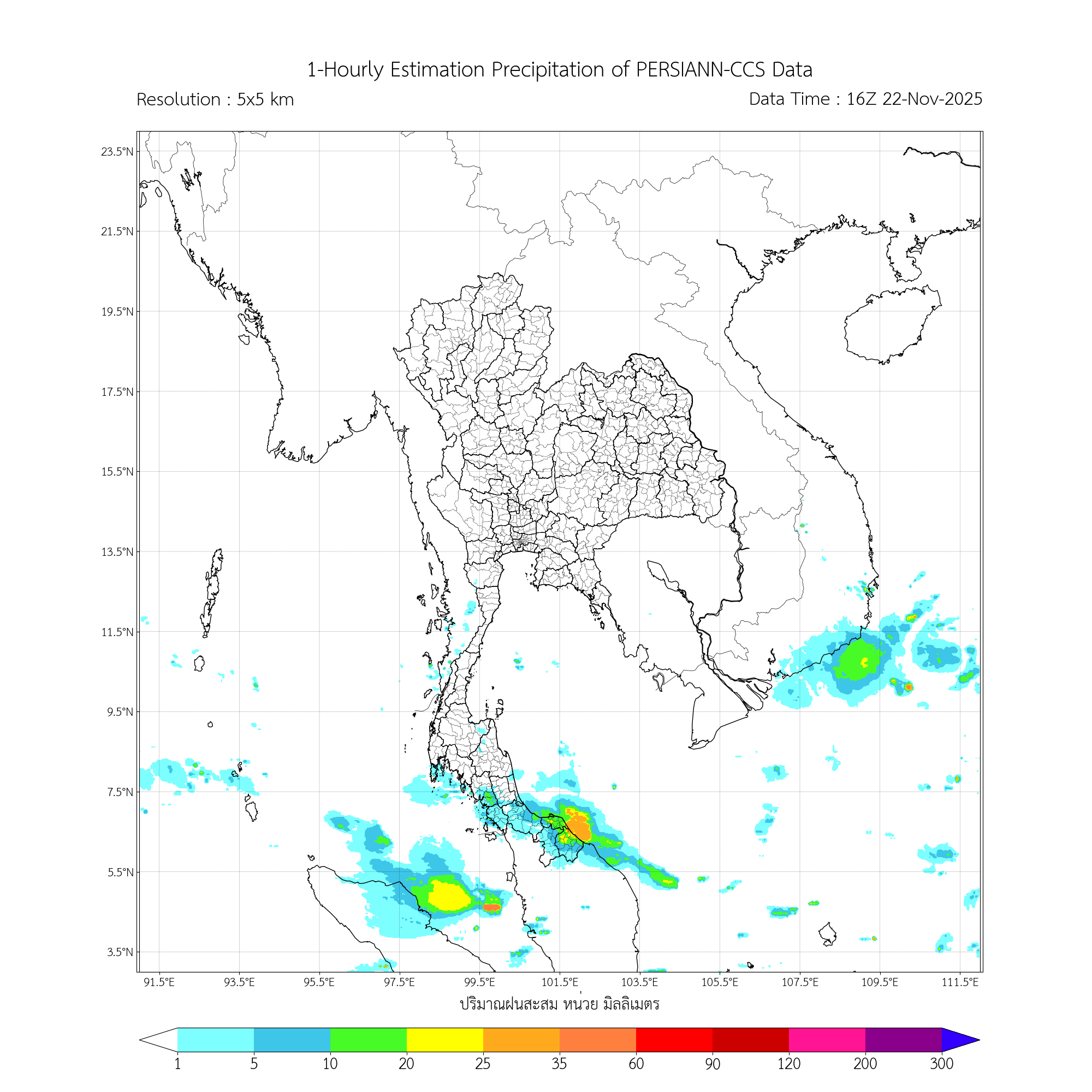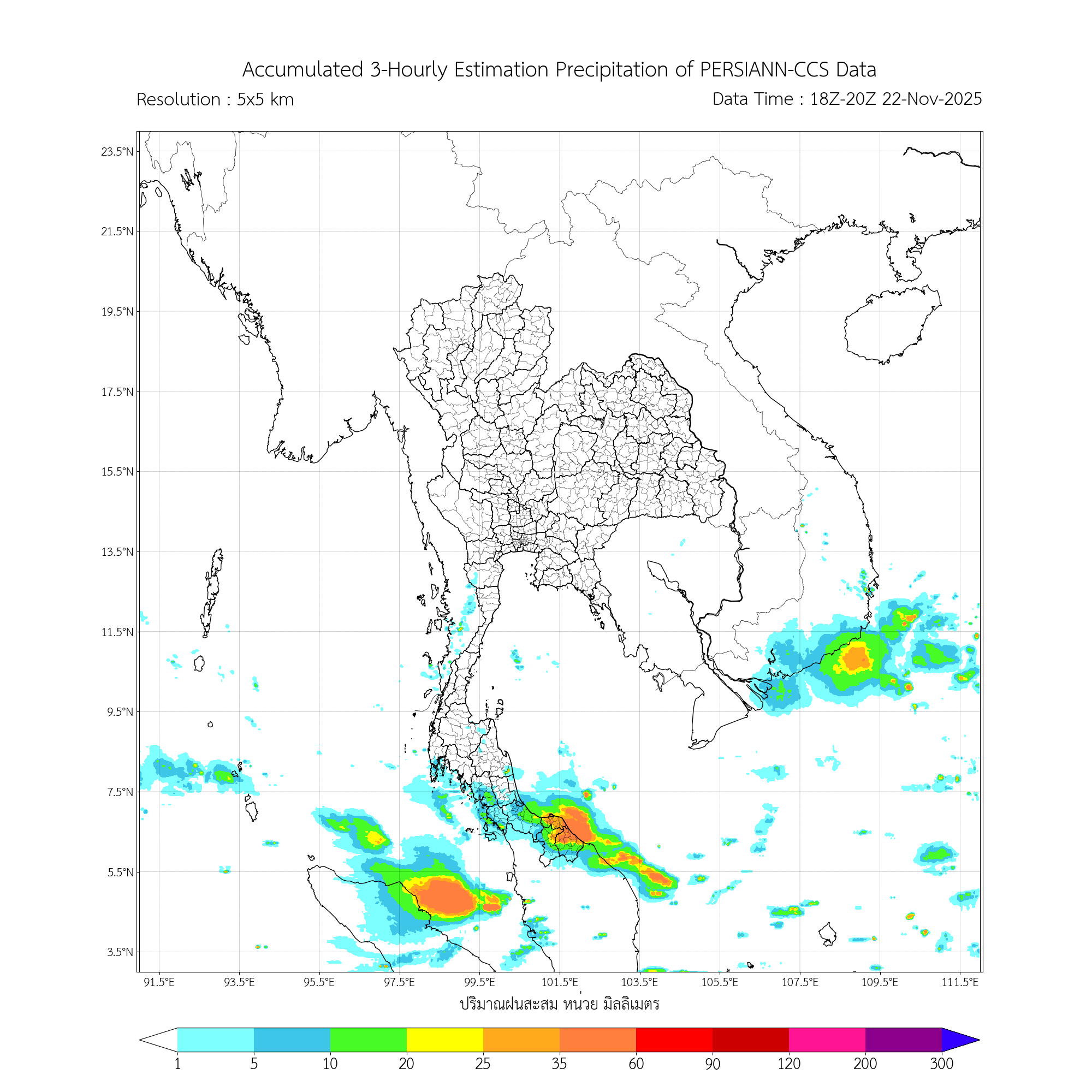 การประมาณค่าฝนจากดาวเทียม เมื่อวาน (22/11/2025)