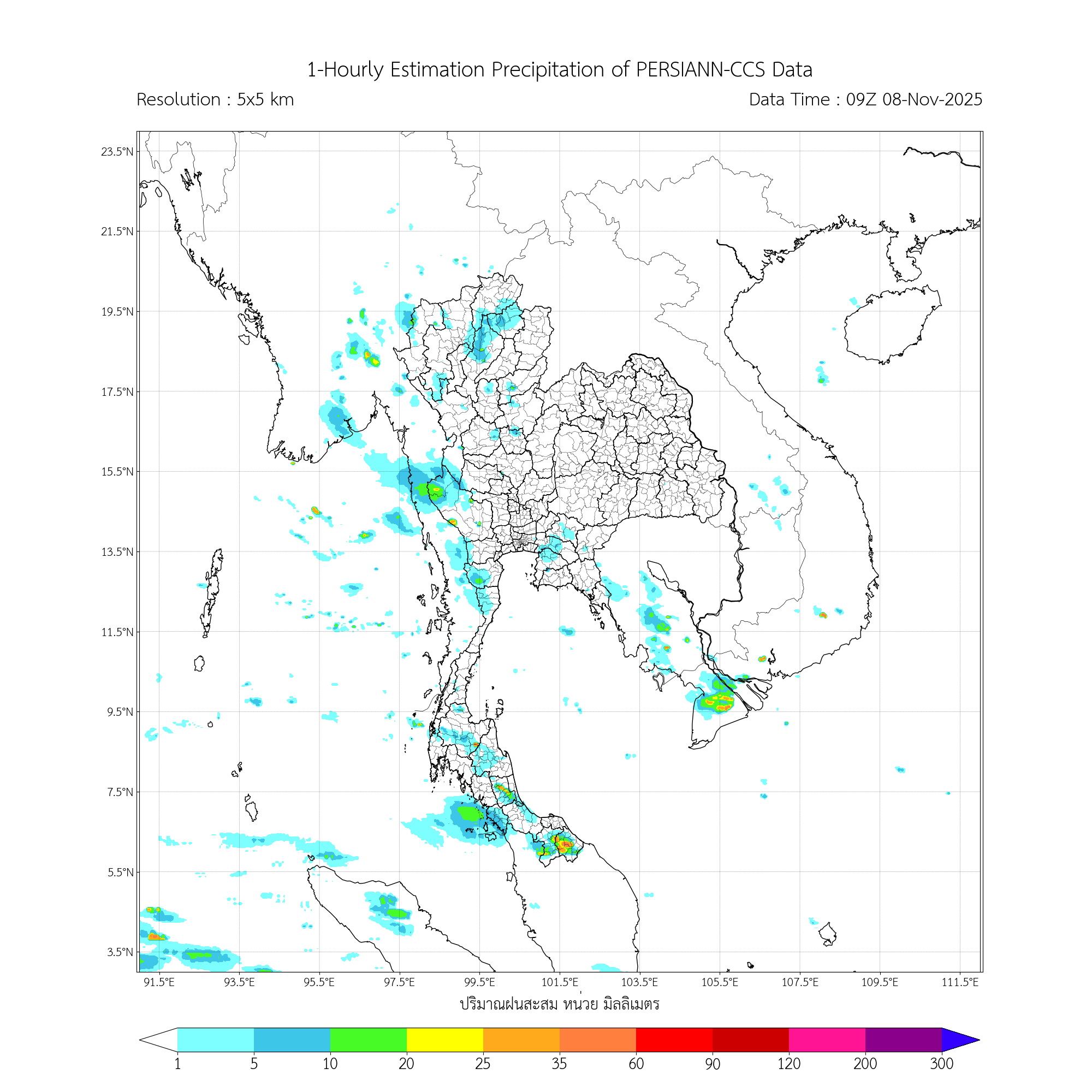 การประมาณค่าฝนจากดาวเทียม เมื่อวาน (07/11/2025)