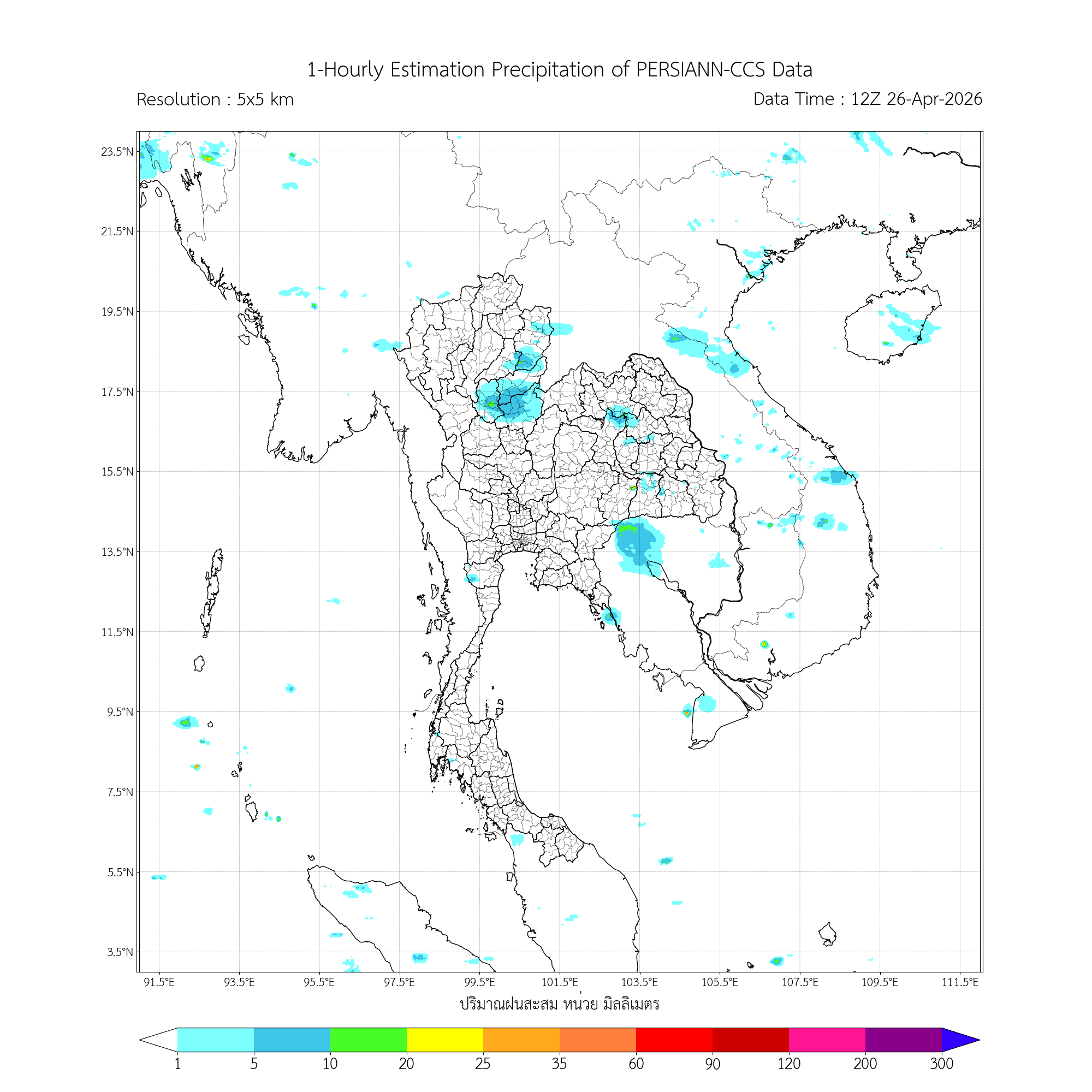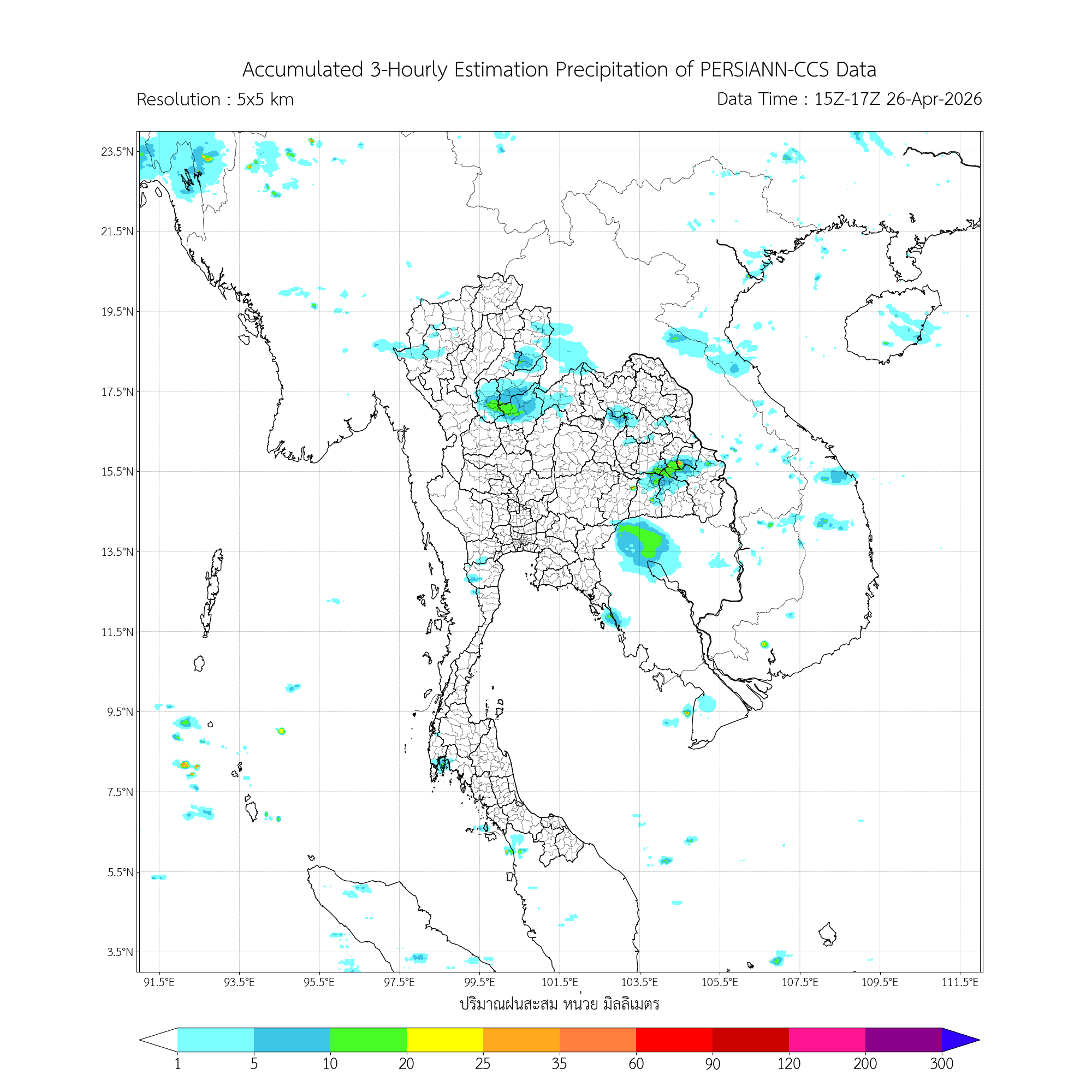 การประมาณค่าฝนจากดาวเทียม เมื่อวาน (25/04/2026)