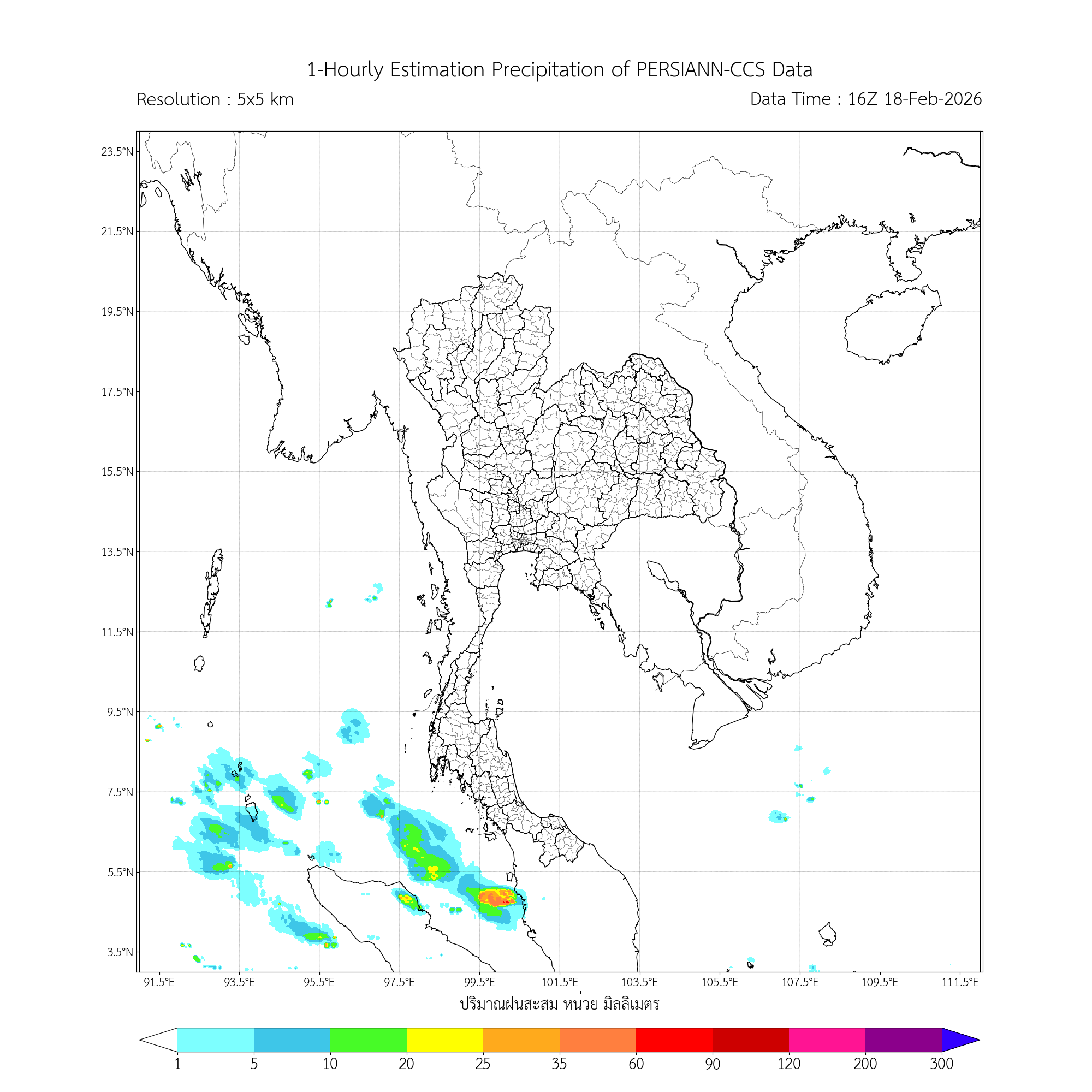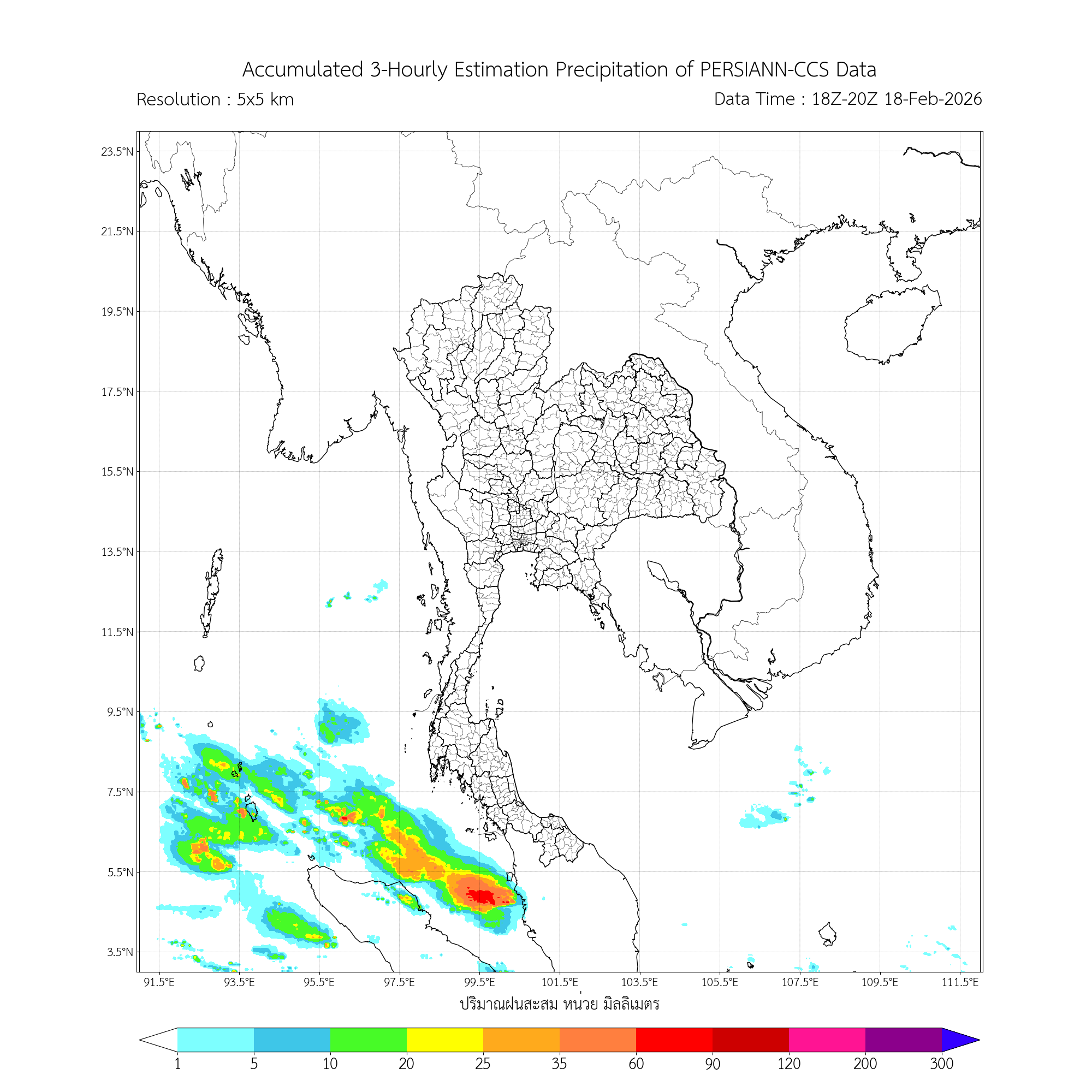 การประมาณค่าฝนจากดาวเทียม เมื่อวาน (18/02/2026)