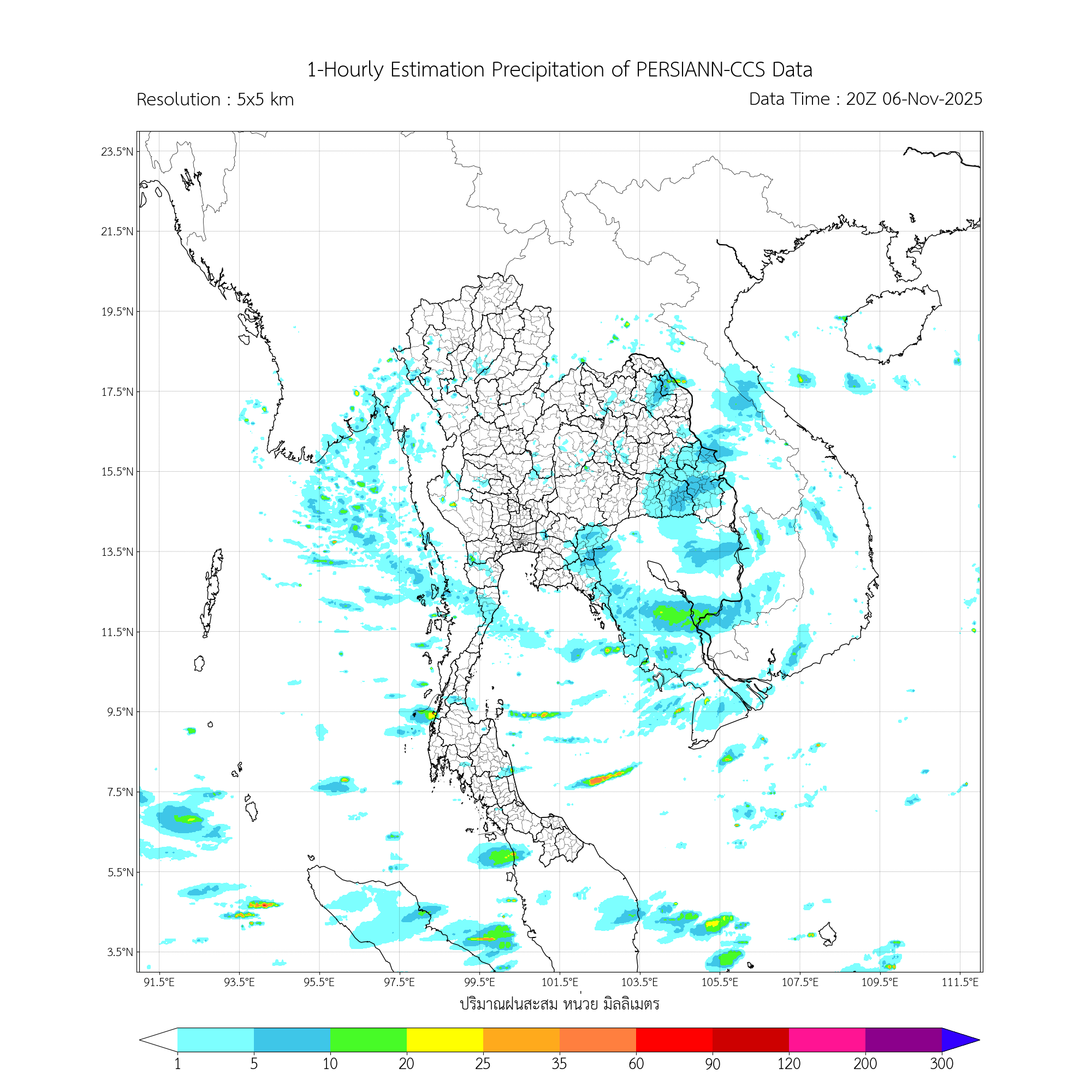 การประมาณค่าฝนจากดาวเทียม เมื่อวาน (06/11/2025)