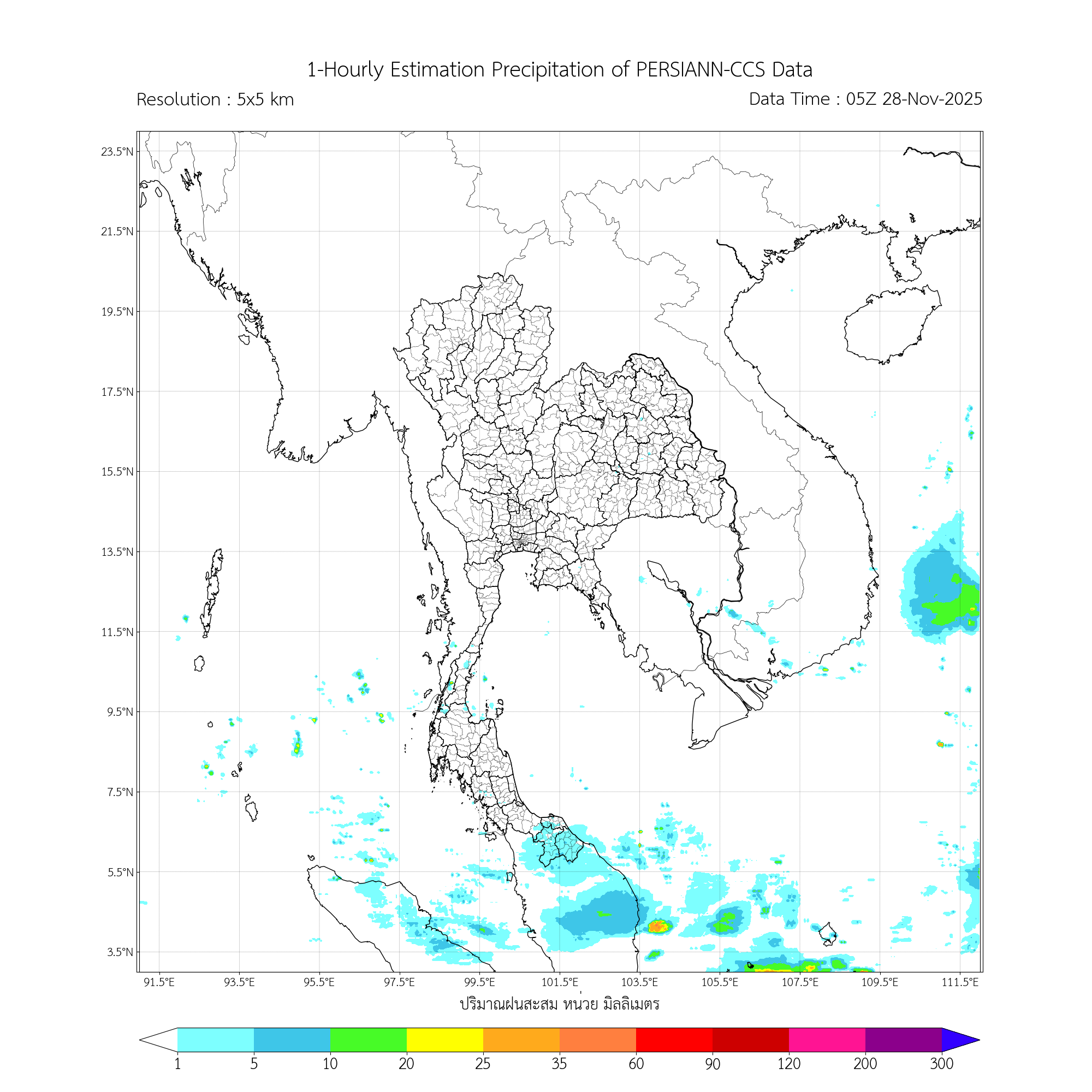 การประมาณค่าฝนจากดาวเทียม เมื่อวาน (27/11/2025)