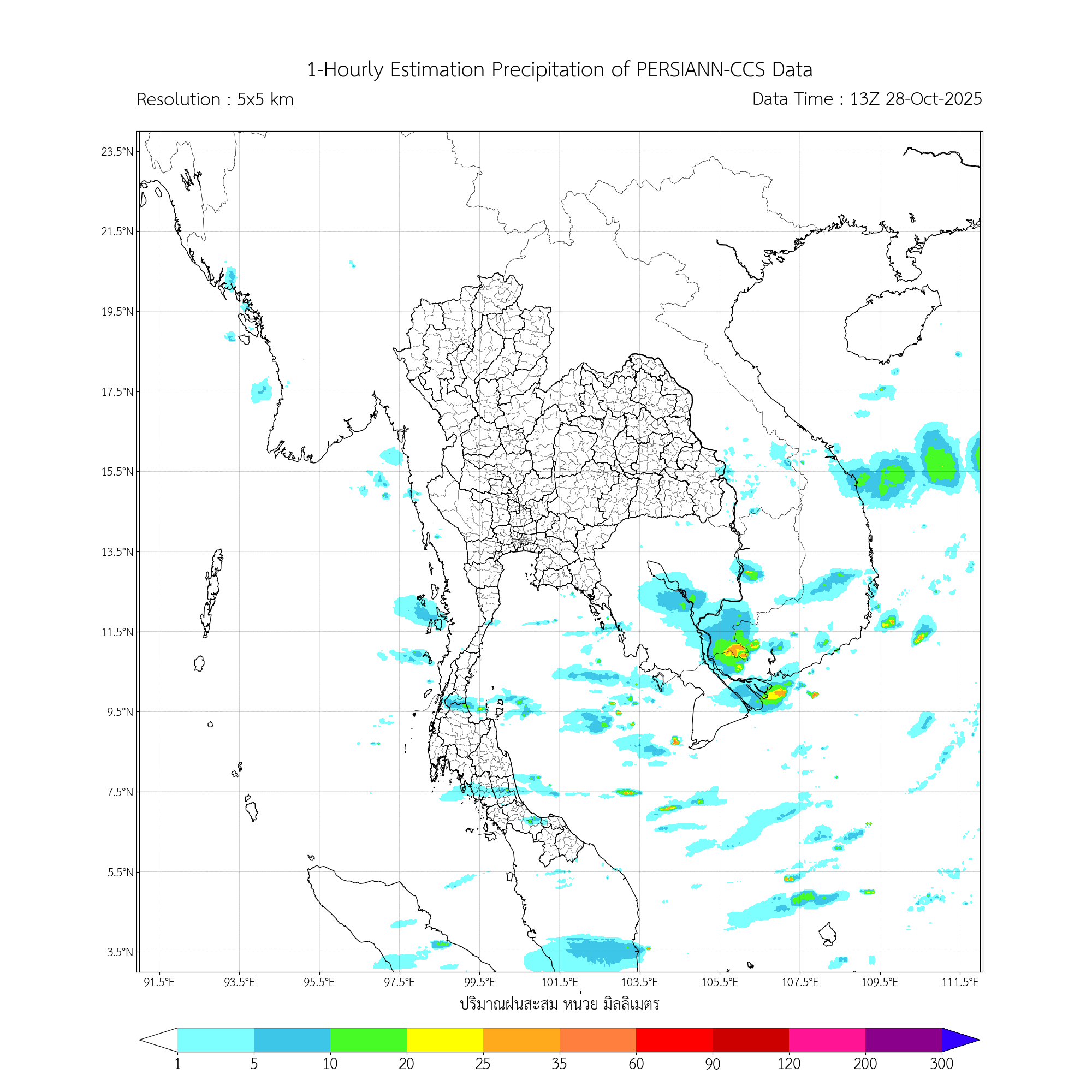การประมาณค่าฝนจากดาวเทียม เมื่อวาน (27/10/2025)