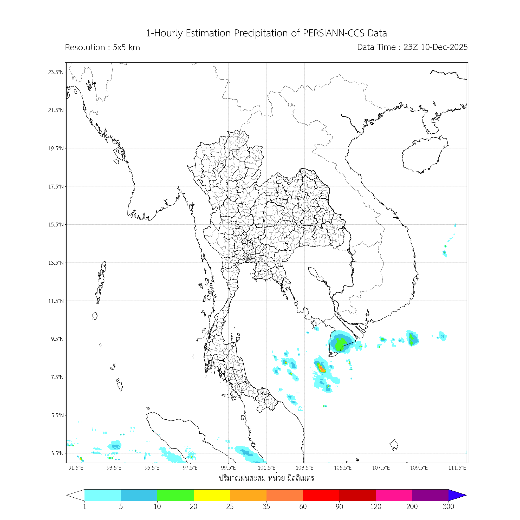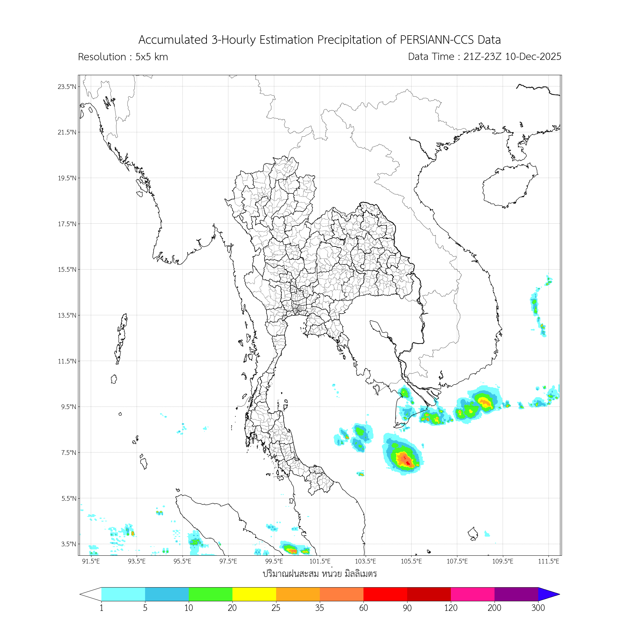 การประมาณค่าฝนจากดาวเทียม เมื่อวาน (10/12/2025)