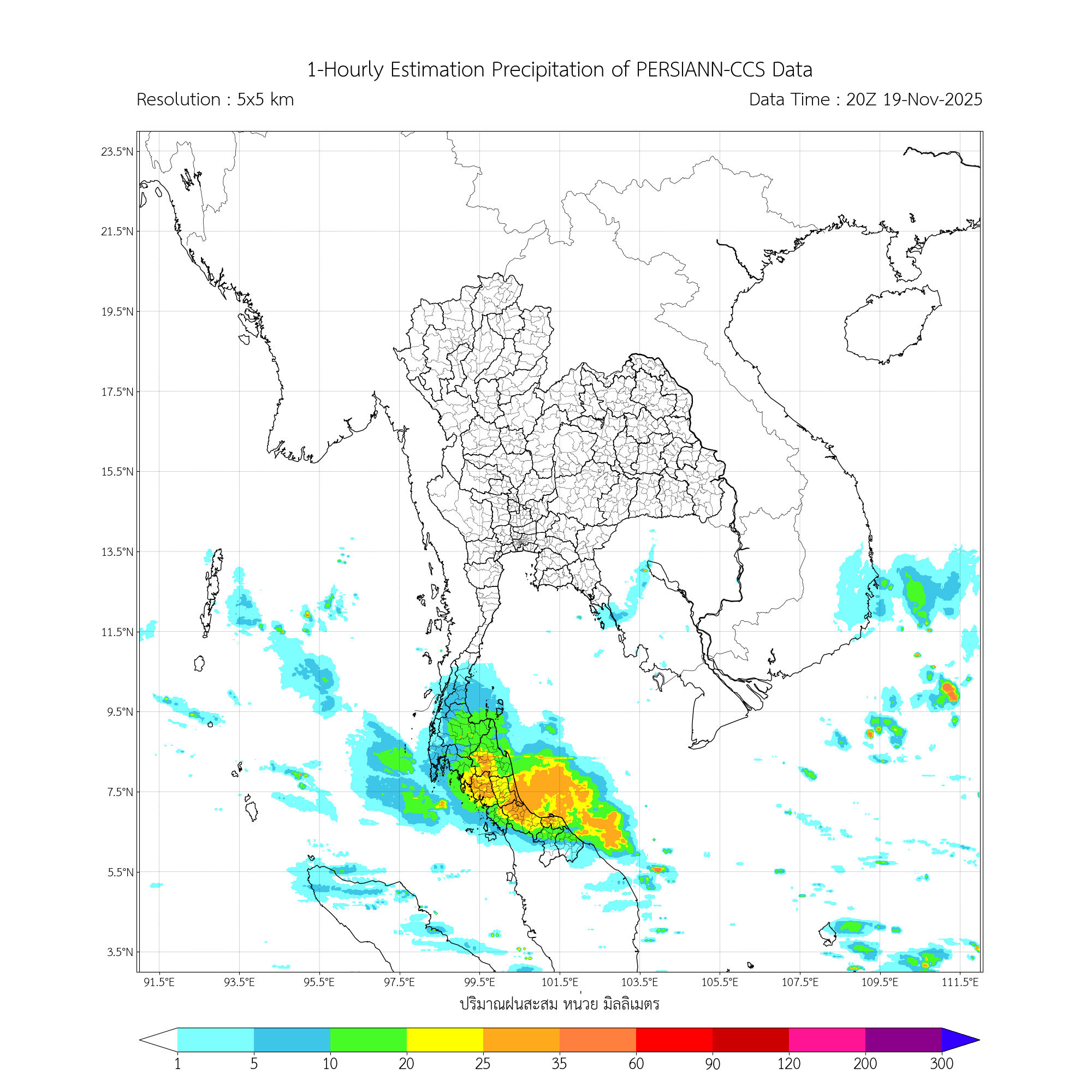 การประมาณค่าฝนจากดาวเทียม เมื่อวาน (19/11/2025)