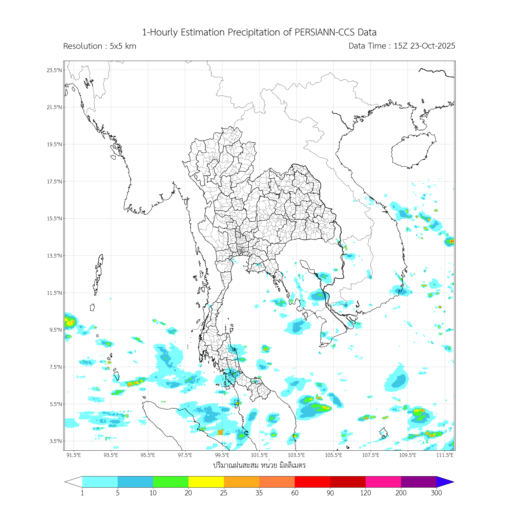 การประมาณค่าฝนจากดาวเทียม เมื่อวาน (23/10/2025)