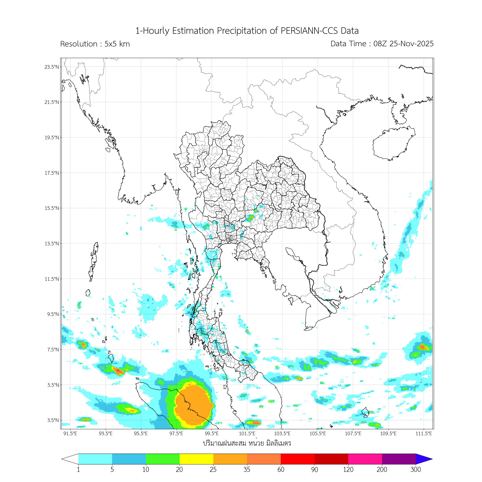 การประมาณค่าฝนจากดาวเทียม เมื่อวาน (24/11/2025)
