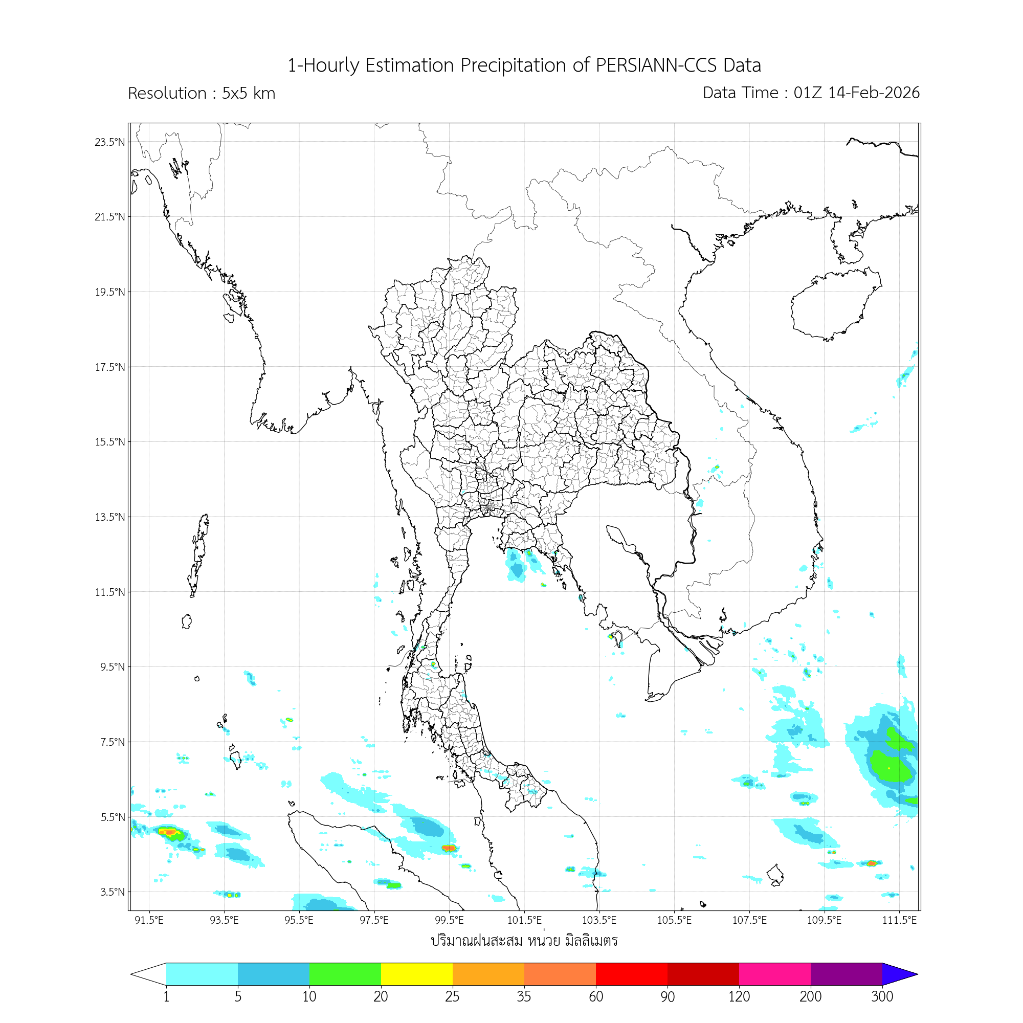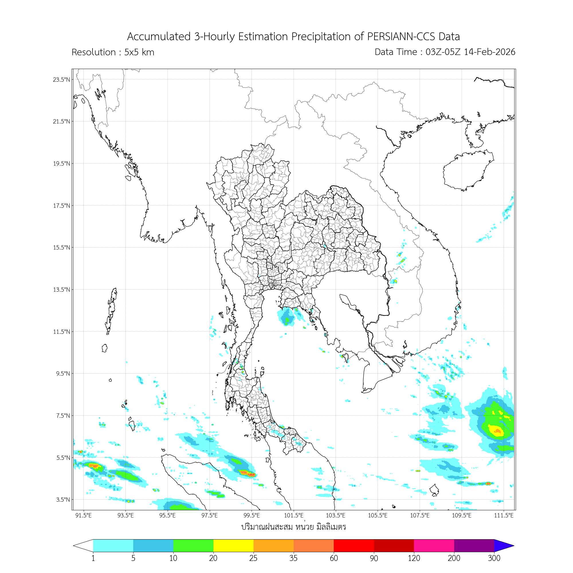 การประมาณค่าฝนจากดาวเทียม เมื่อวาน (13/02/2026)