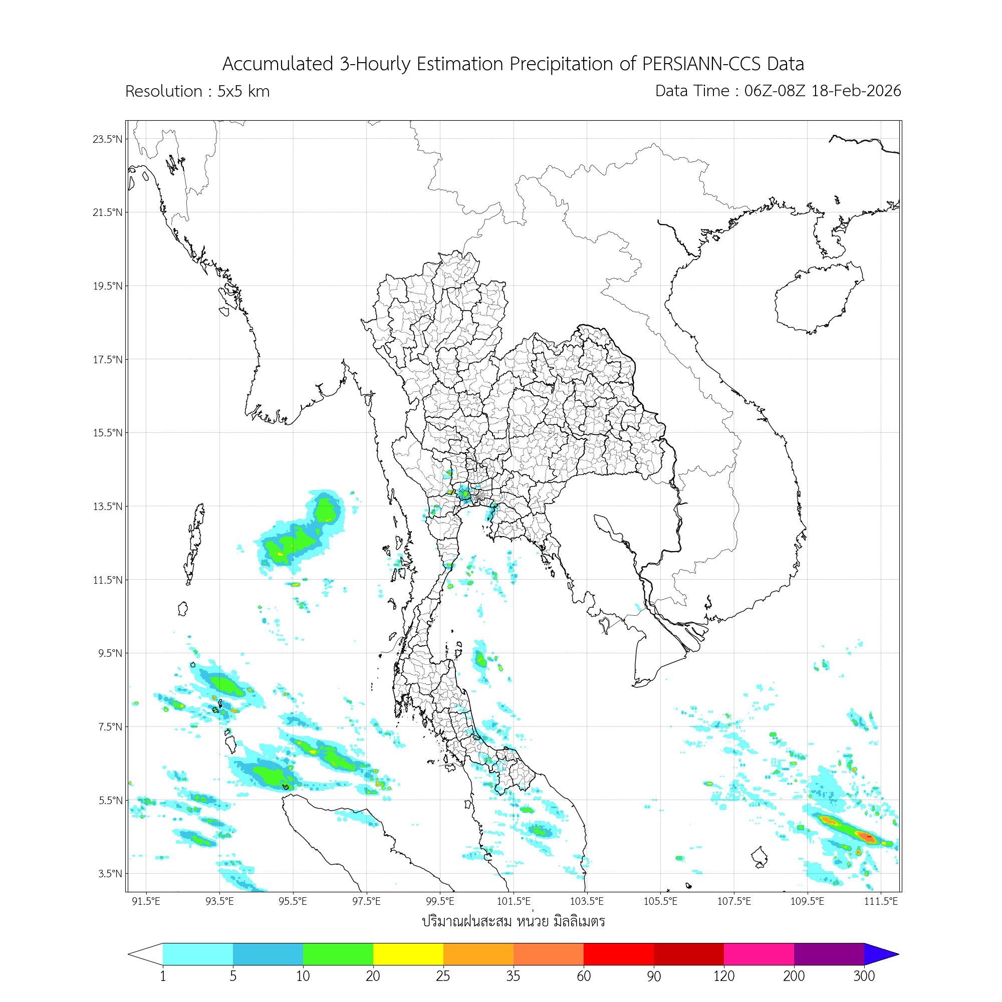 การประมาณค่าฝนจากดาวเทียม เมื่อวาน (17/02/2026)