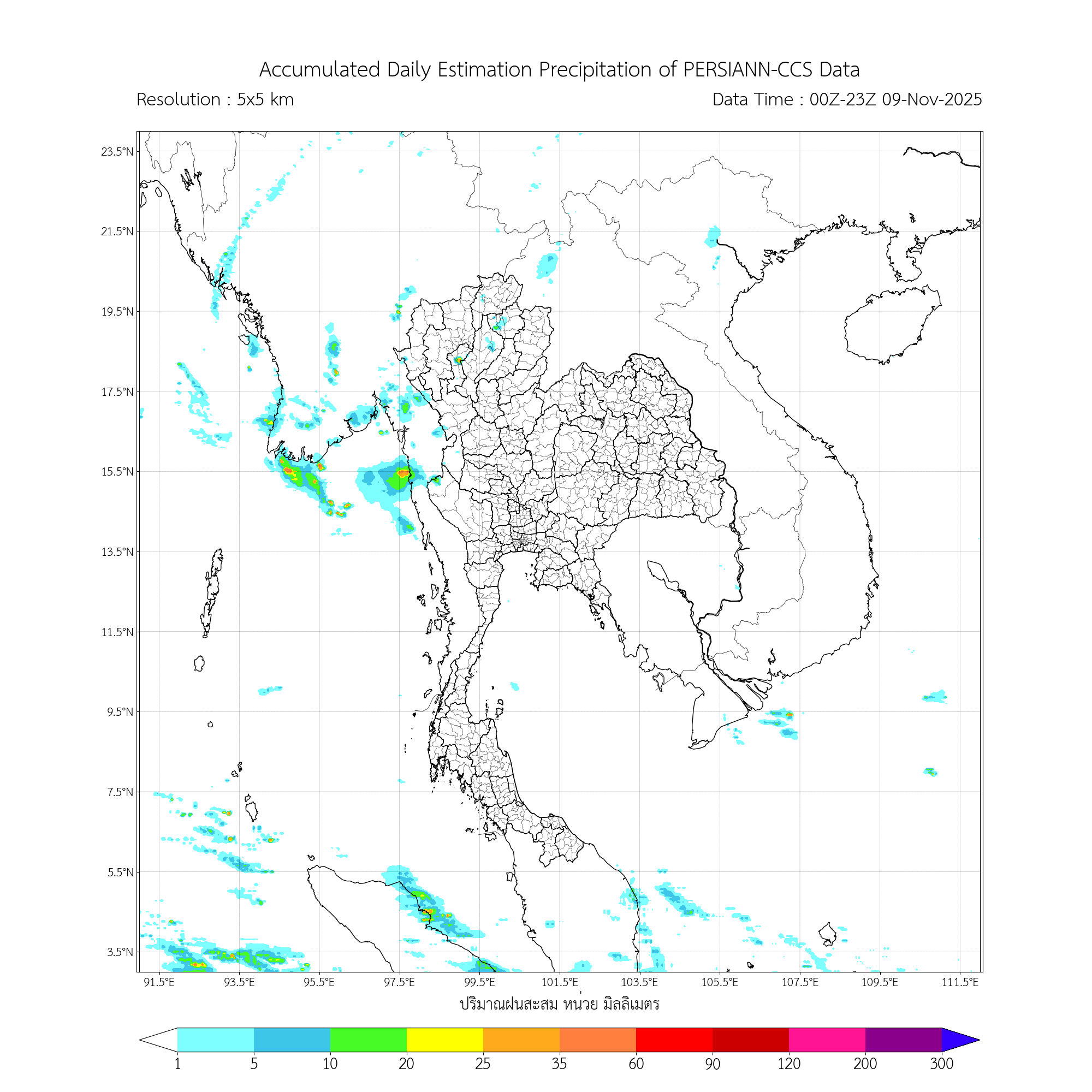 การประมาณค่าฝนจากดาวเทียม เมื่อวาน (08/11/2025)