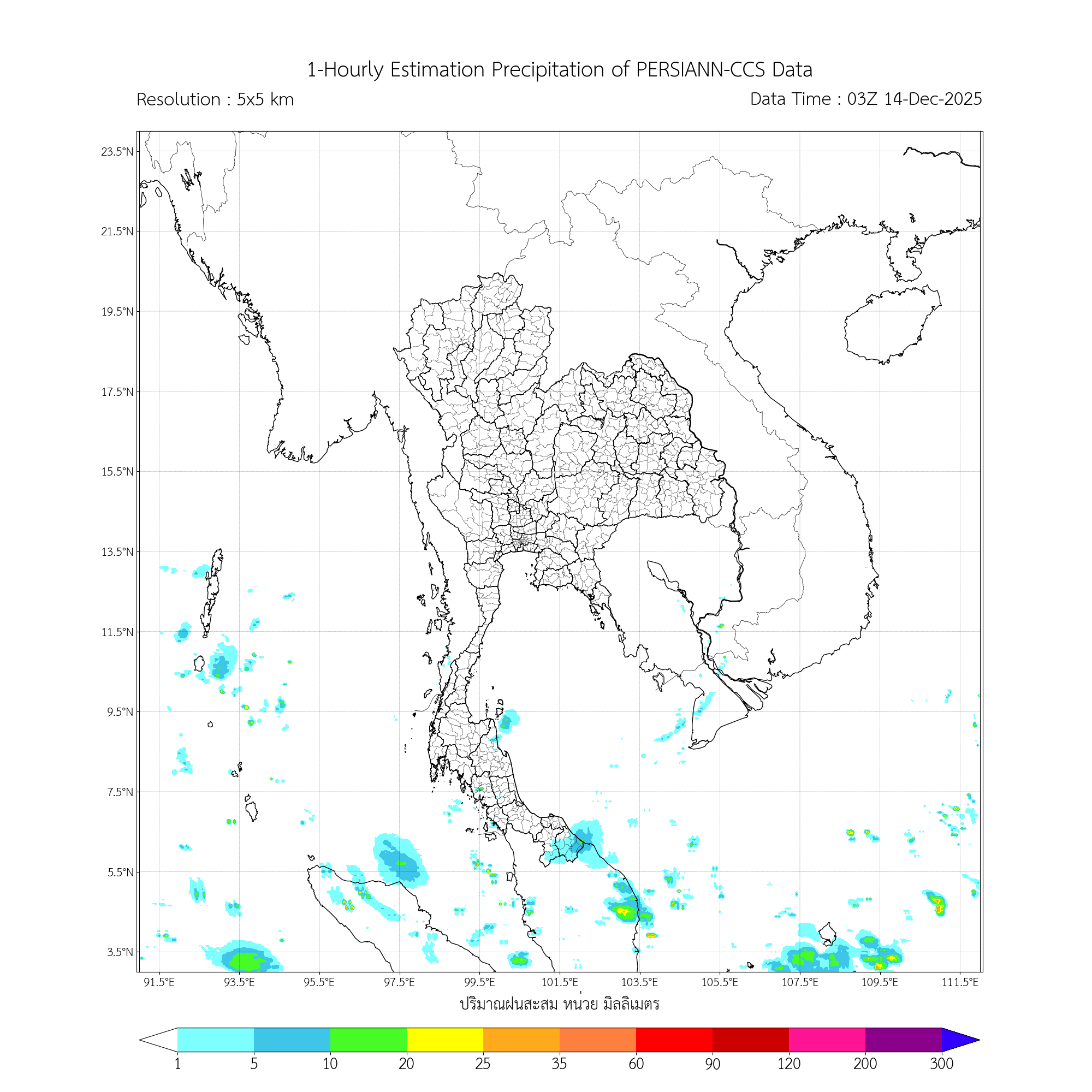 การประมาณค่าฝนจากดาวเทียม เมื่อวาน (13/12/2025)