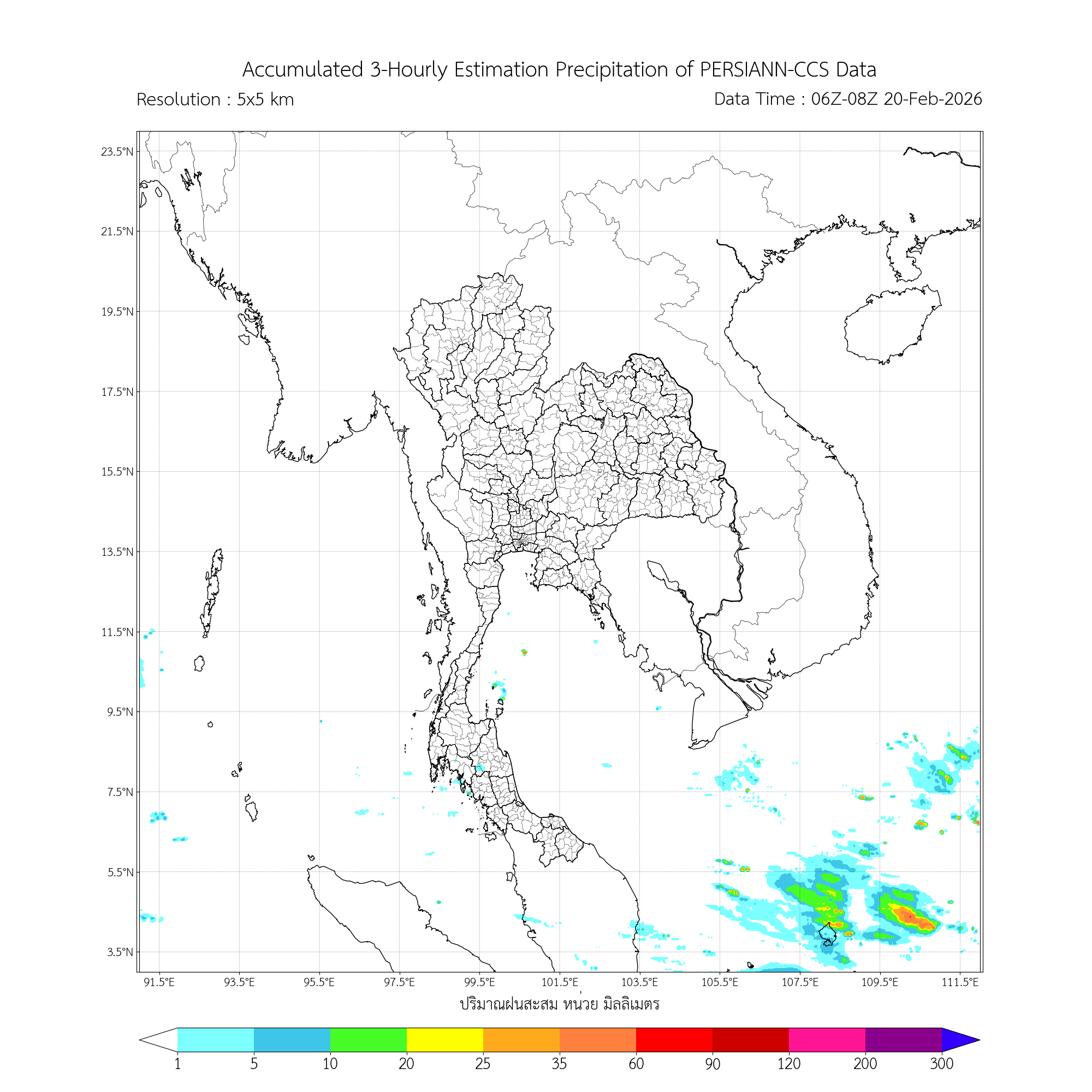 การประมาณค่าฝนจากดาวเทียม เมื่อวาน (19/02/2026)
