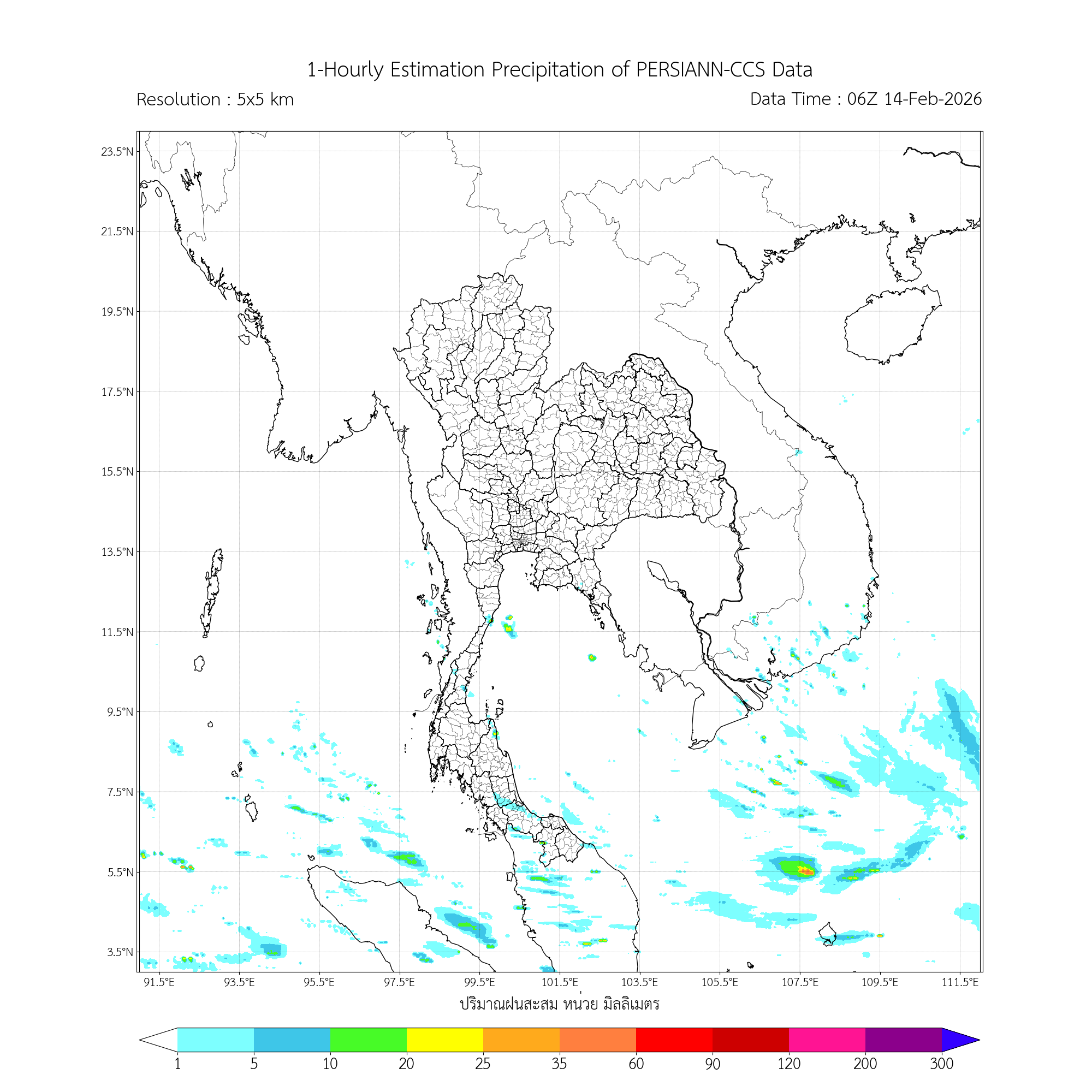 การประมาณค่าฝนจากดาวเทียม เมื่อวาน (13/02/2026)