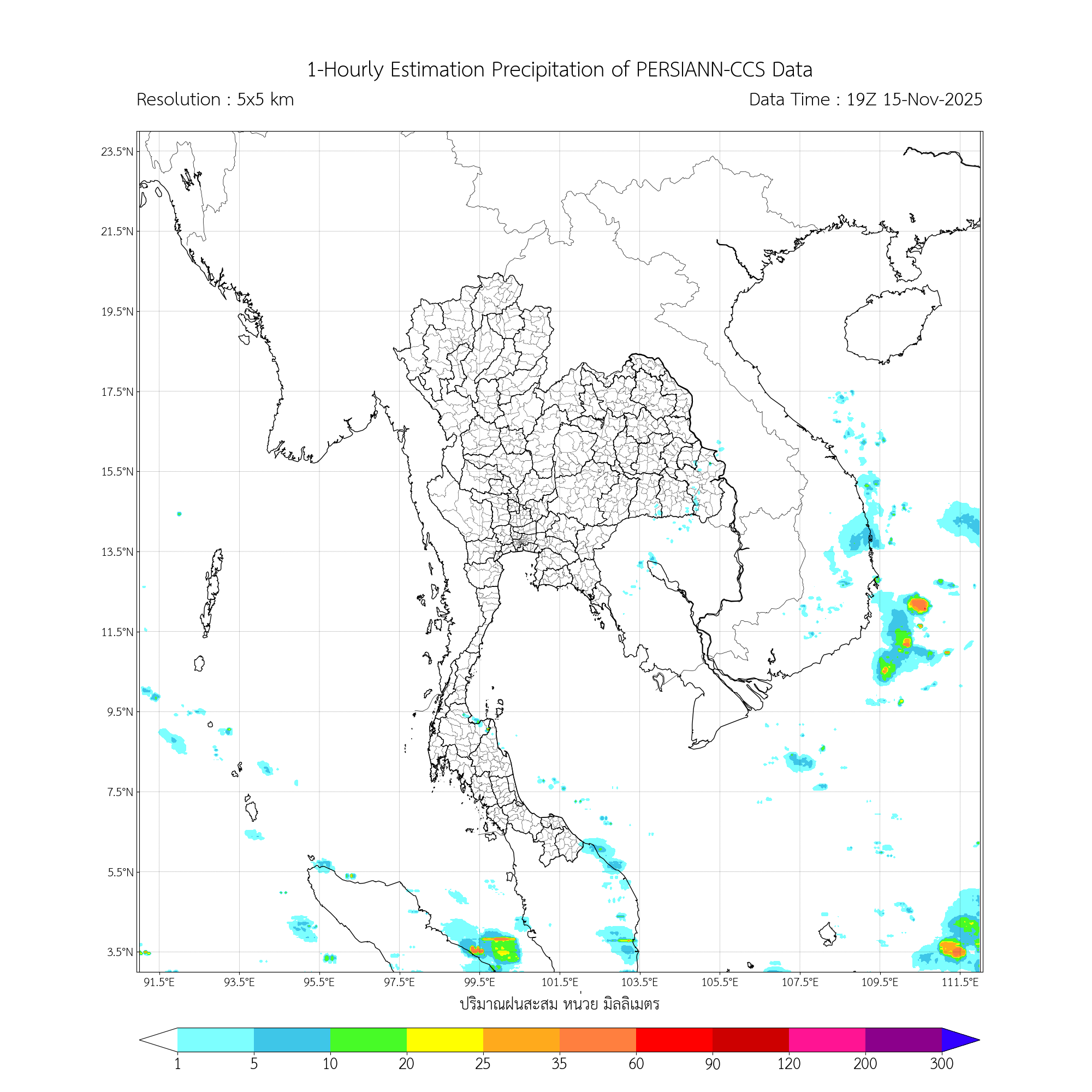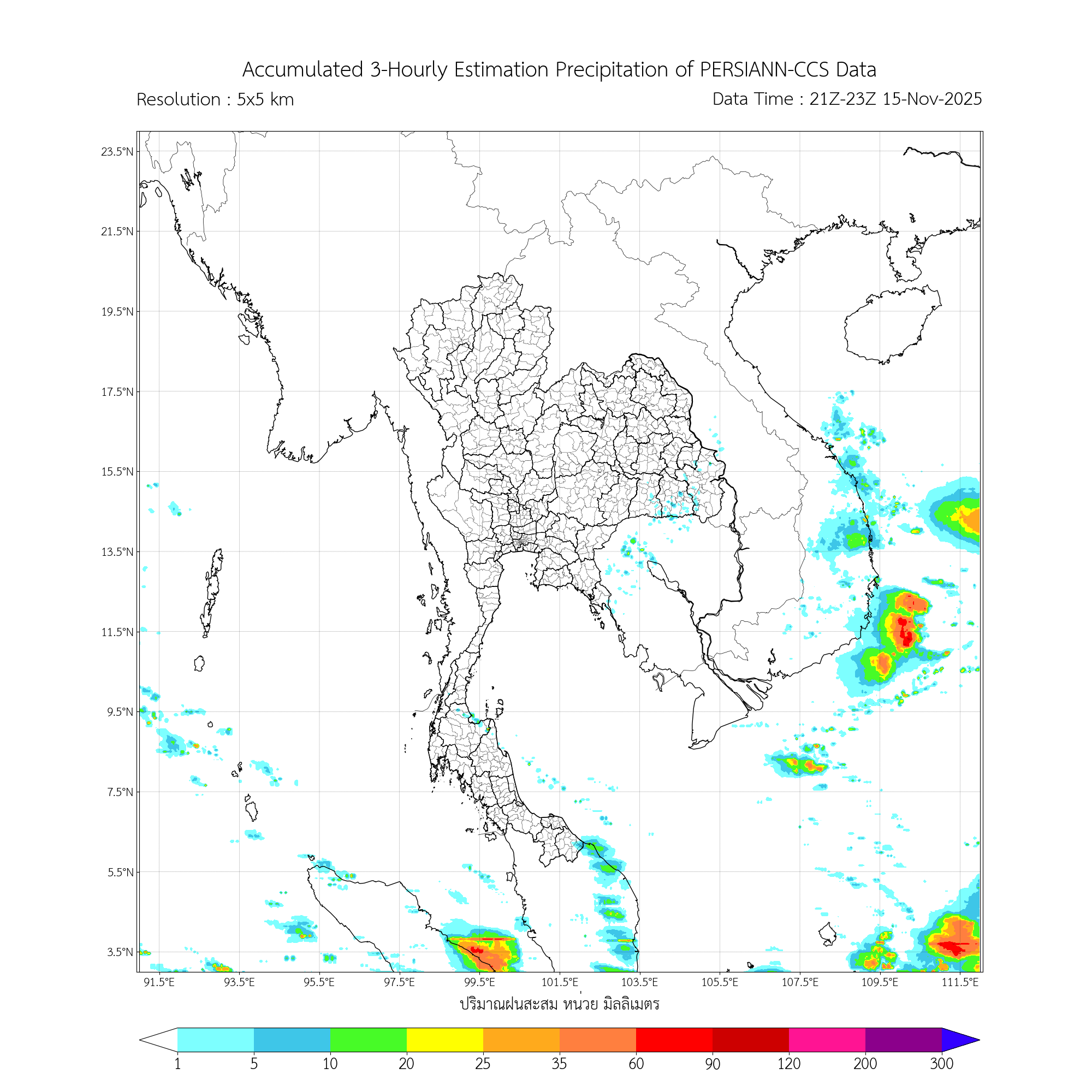 การประมาณค่าฝนจากดาวเทียม เมื่อวาน (15/11/2025)