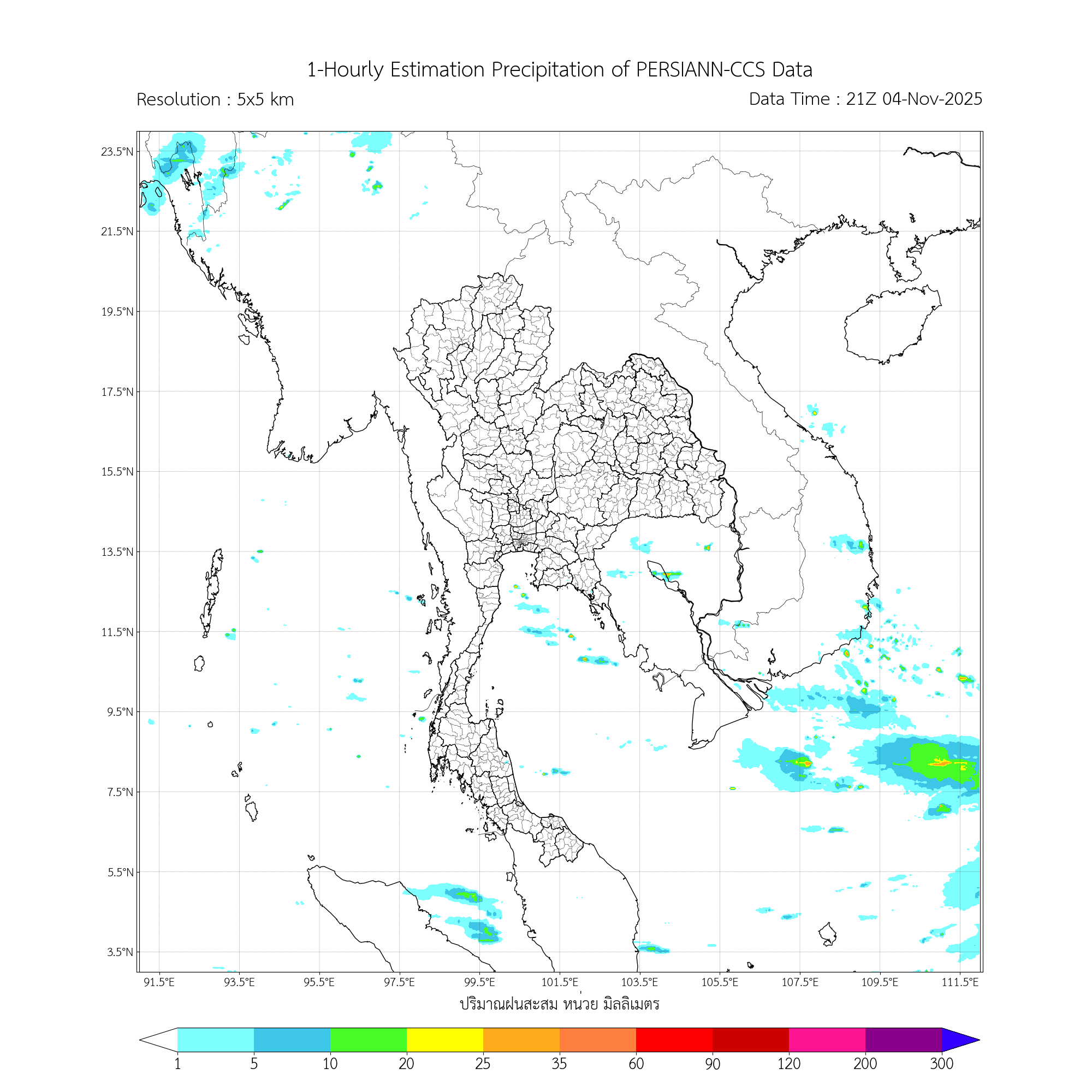 การประมาณค่าฝนจากดาวเทียม เมื่อวาน (04/11/2025)