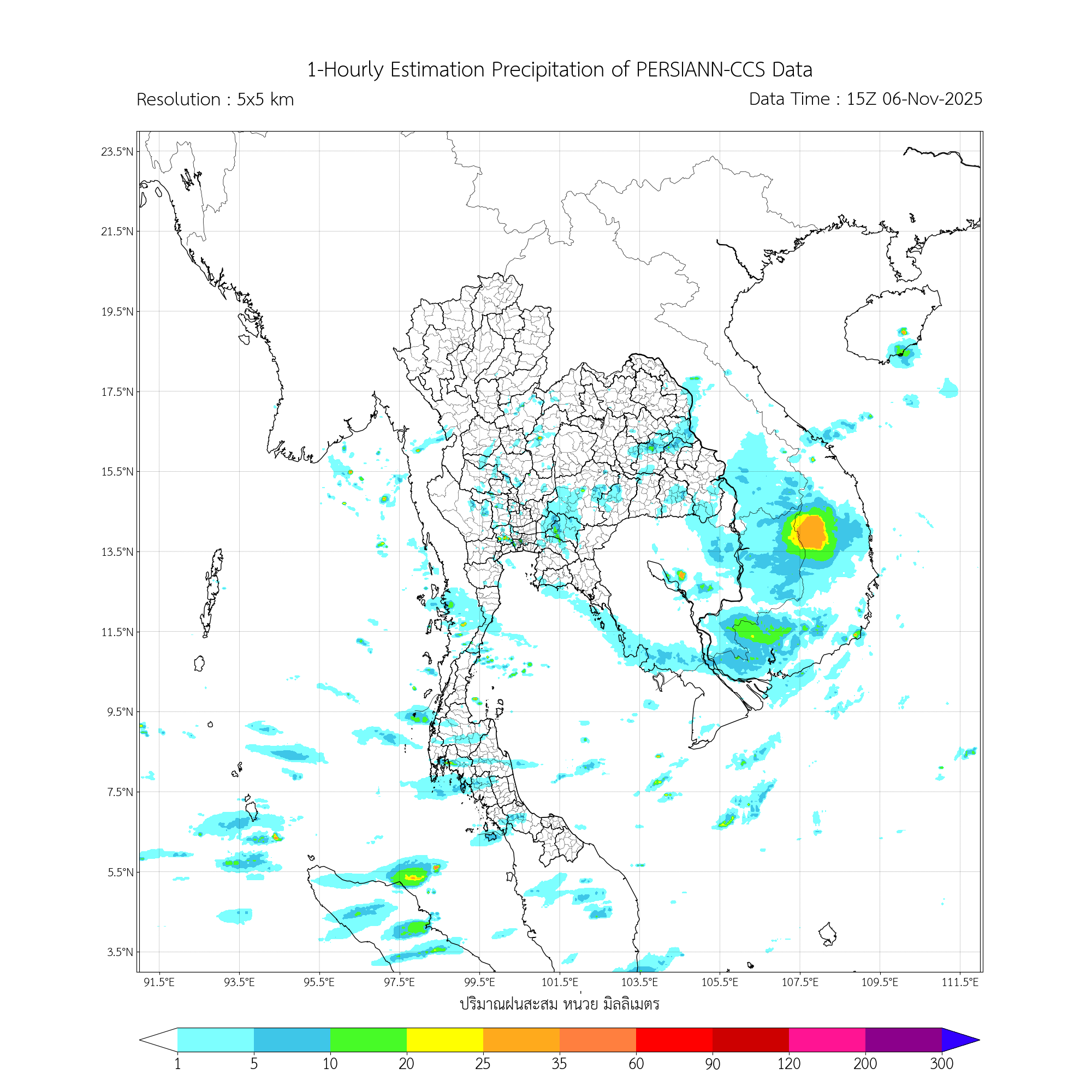 การประมาณค่าฝนจากดาวเทียม เมื่อวาน (06/11/2025)