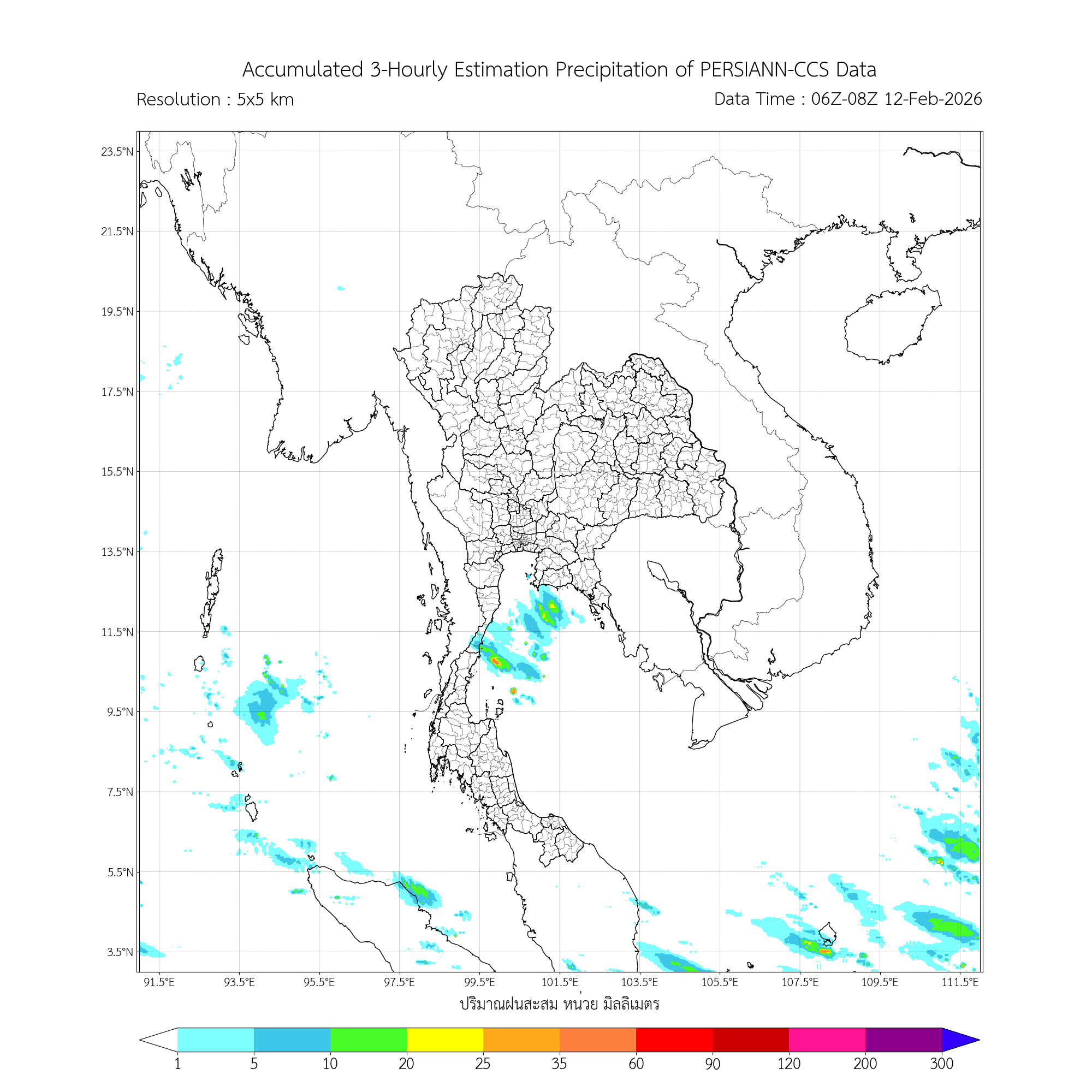 การประมาณค่าฝนจากดาวเทียม เมื่อวาน (11/02/2026)