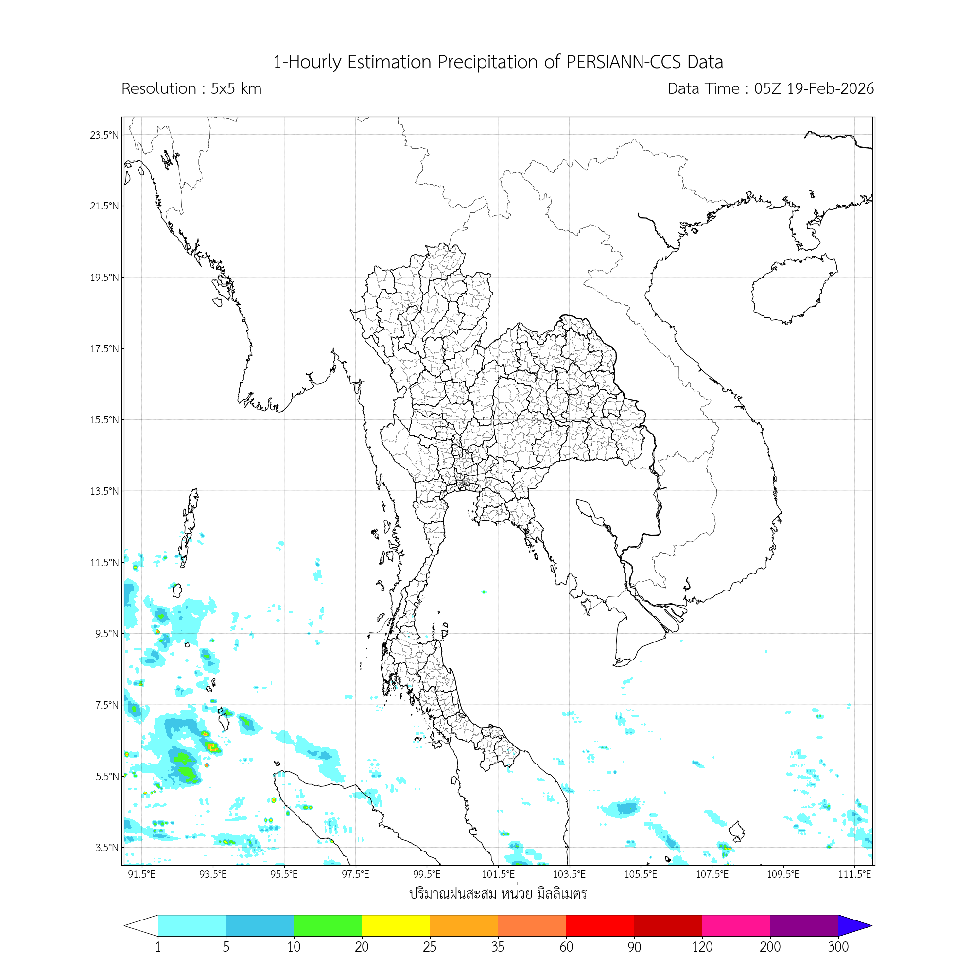 การประมาณค่าฝนจากดาวเทียม เมื่อวาน (18/02/2026)