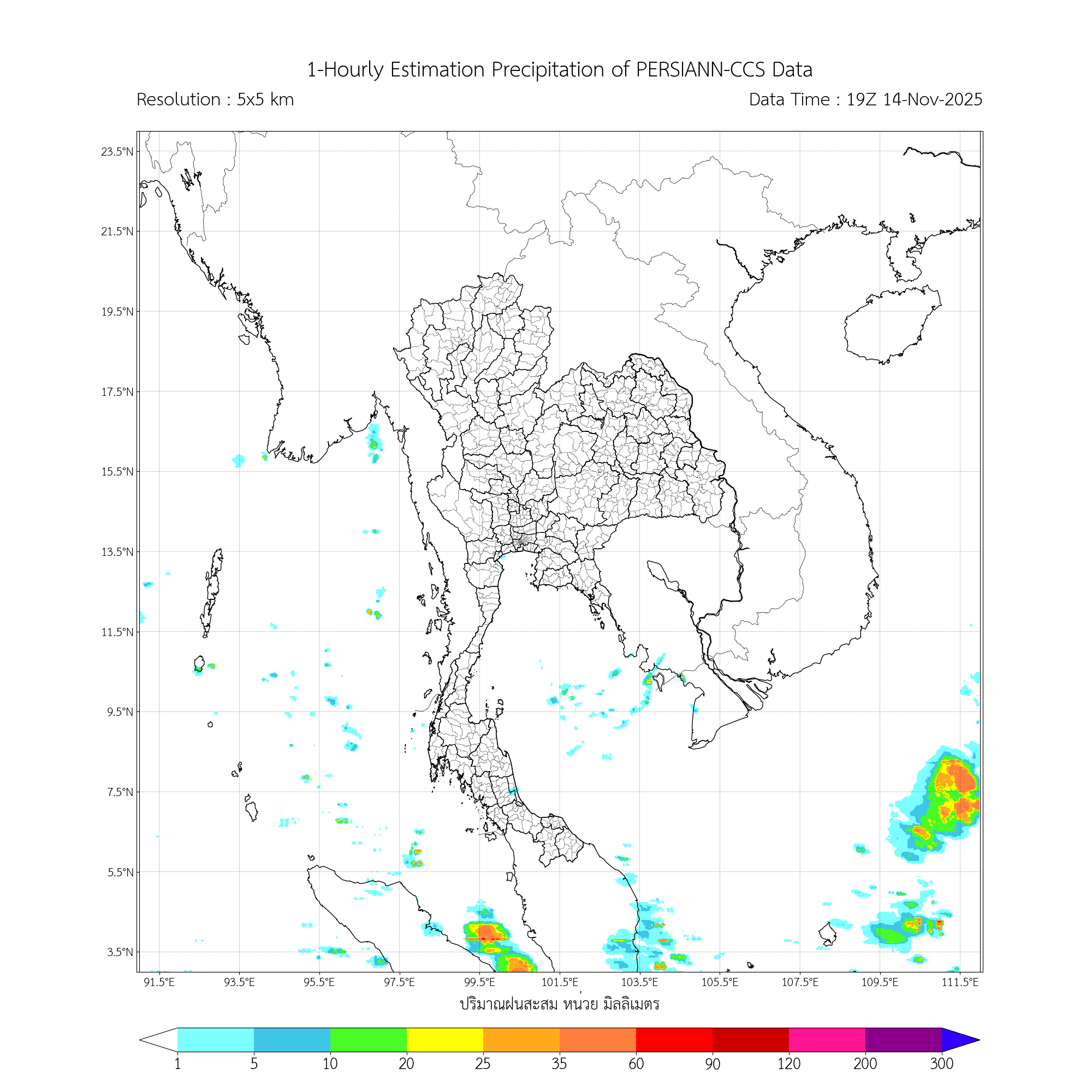การประมาณค่าฝนจากดาวเทียม เมื่อวาน (14/11/2025)