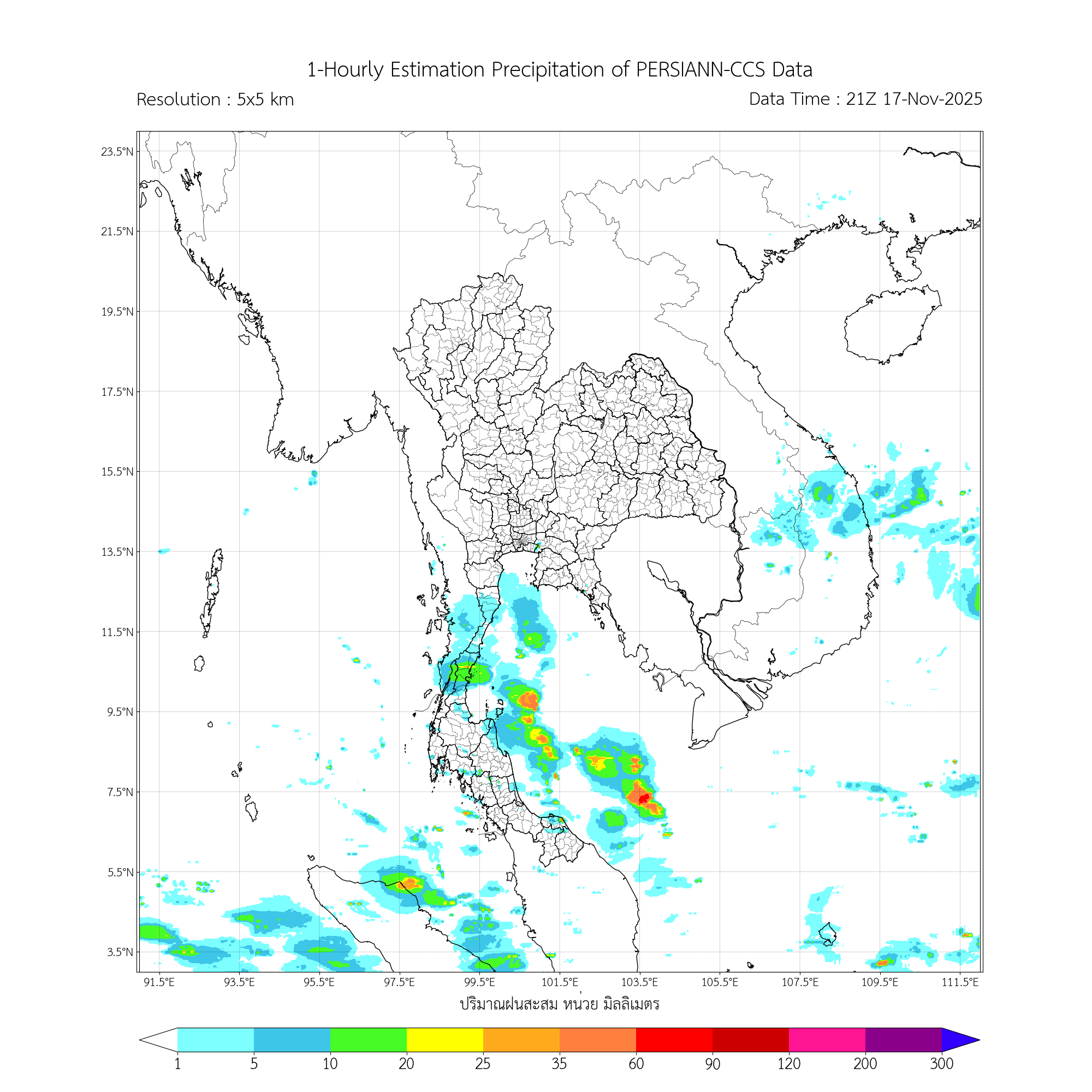 การประมาณค่าฝนจากดาวเทียม เมื่อวาน (17/11/2025)