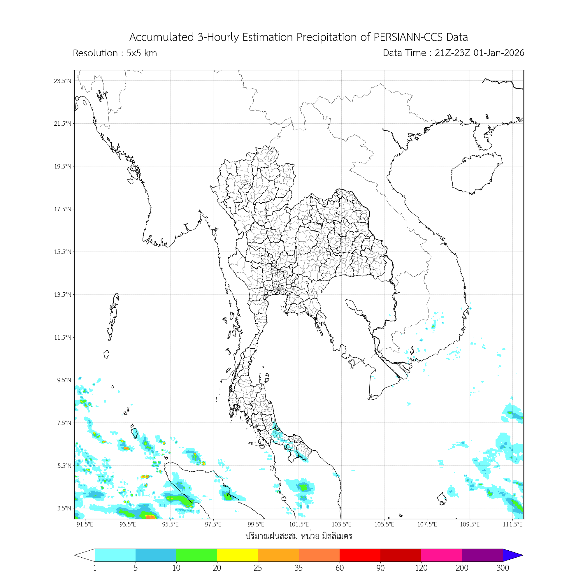 การประมาณค่าฝนจากดาวเทียม เมื่อวาน (01/01/2026)