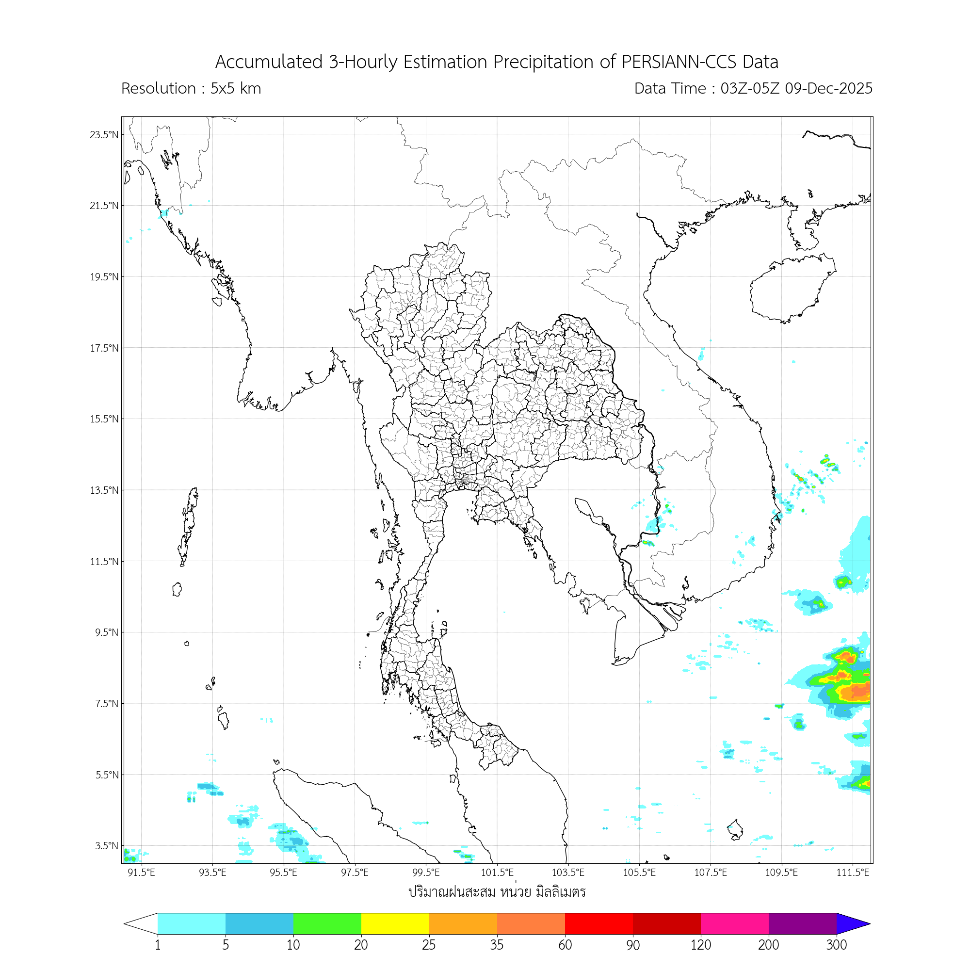 ค่าประมาณฝนสะสม 3 ชั่วโมง จากดาวเทียมอุตุนิยมวิทยา