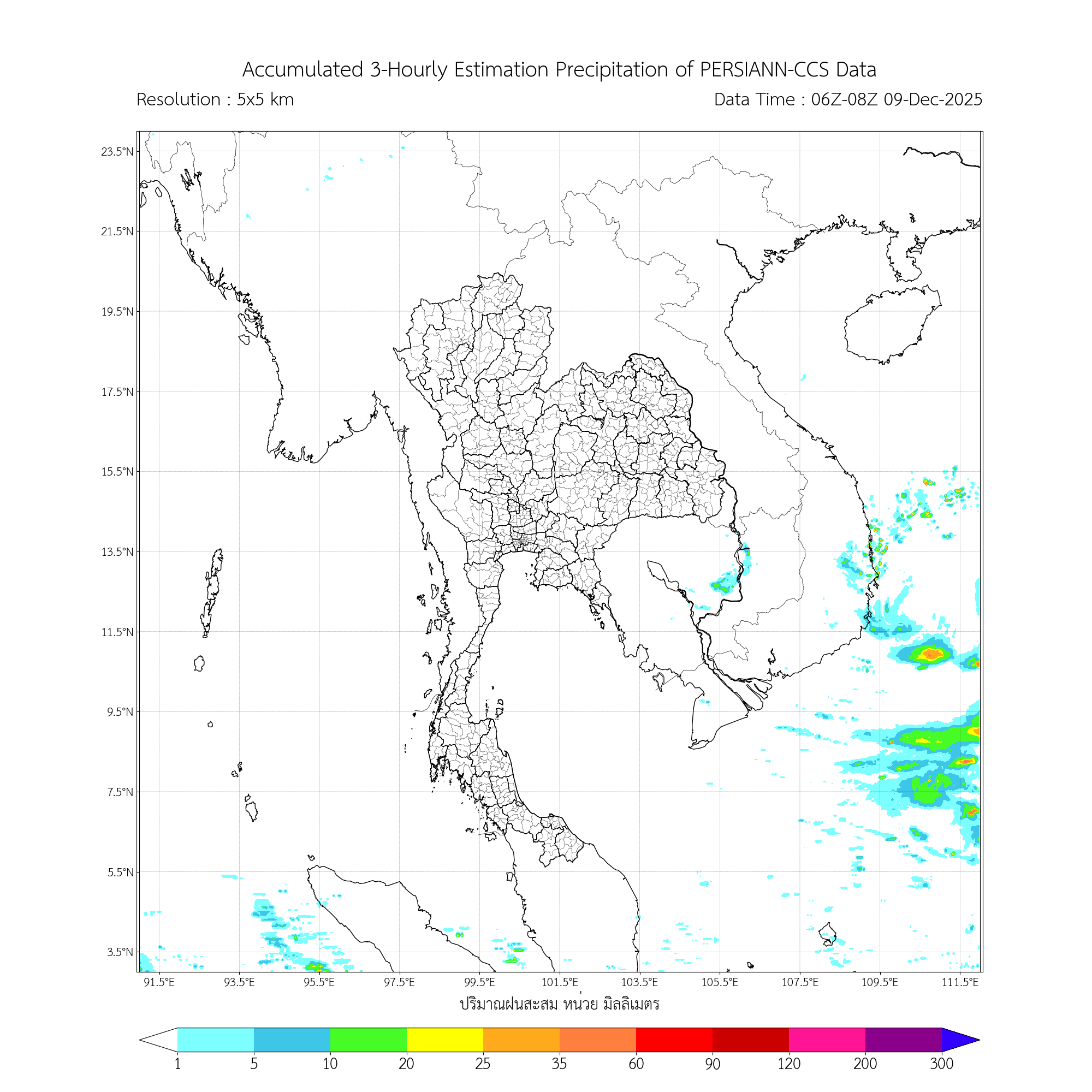 การประมาณค่าฝนจากดาวเทียม เมื่อวาน (08/12/2025)