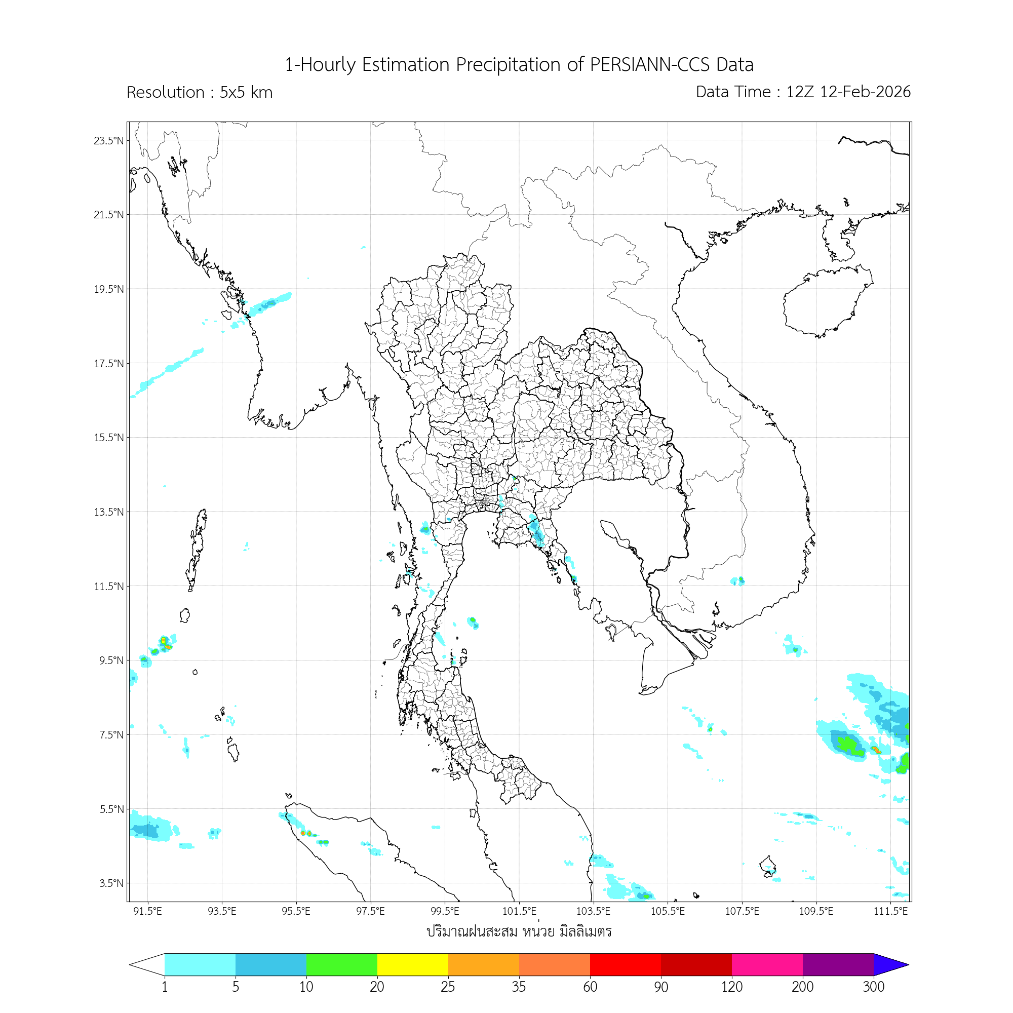 การประมาณค่าฝนจากดาวเทียม เมื่อวาน (11/02/2026)