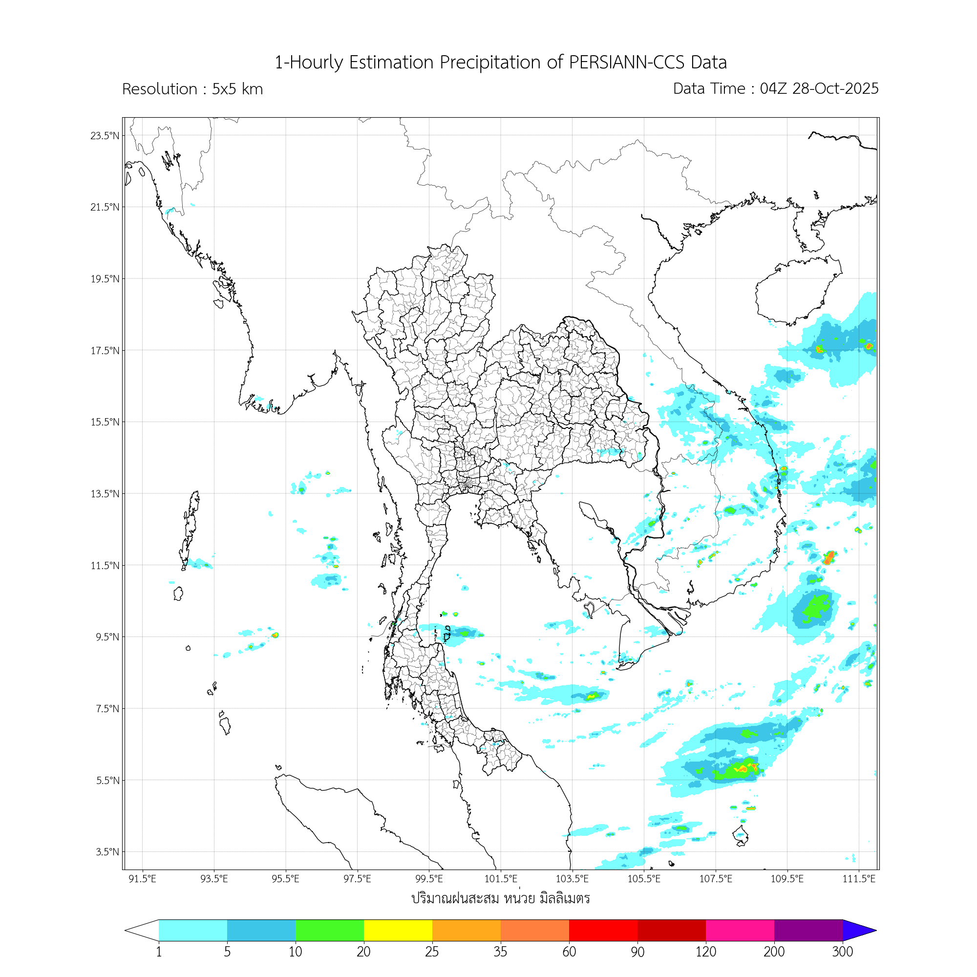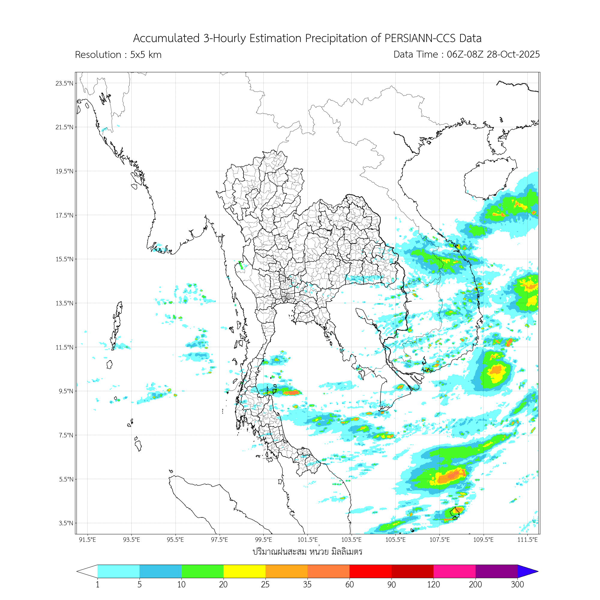 การประมาณค่าฝนจากดาวเทียม เมื่อวาน (27/10/2025)