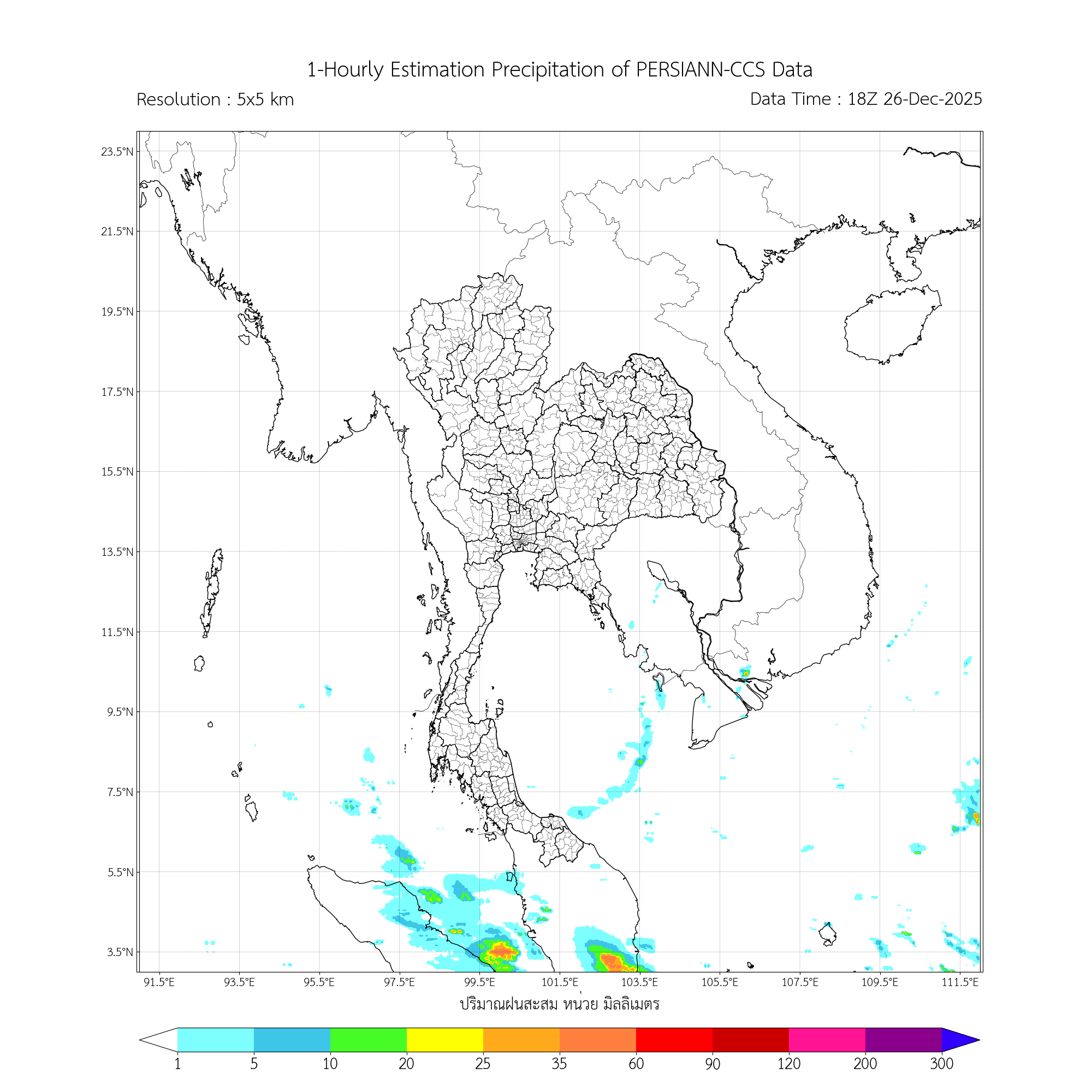 การประมาณค่าฝนจากดาวเทียม เมื่อวาน (26/12/2025)