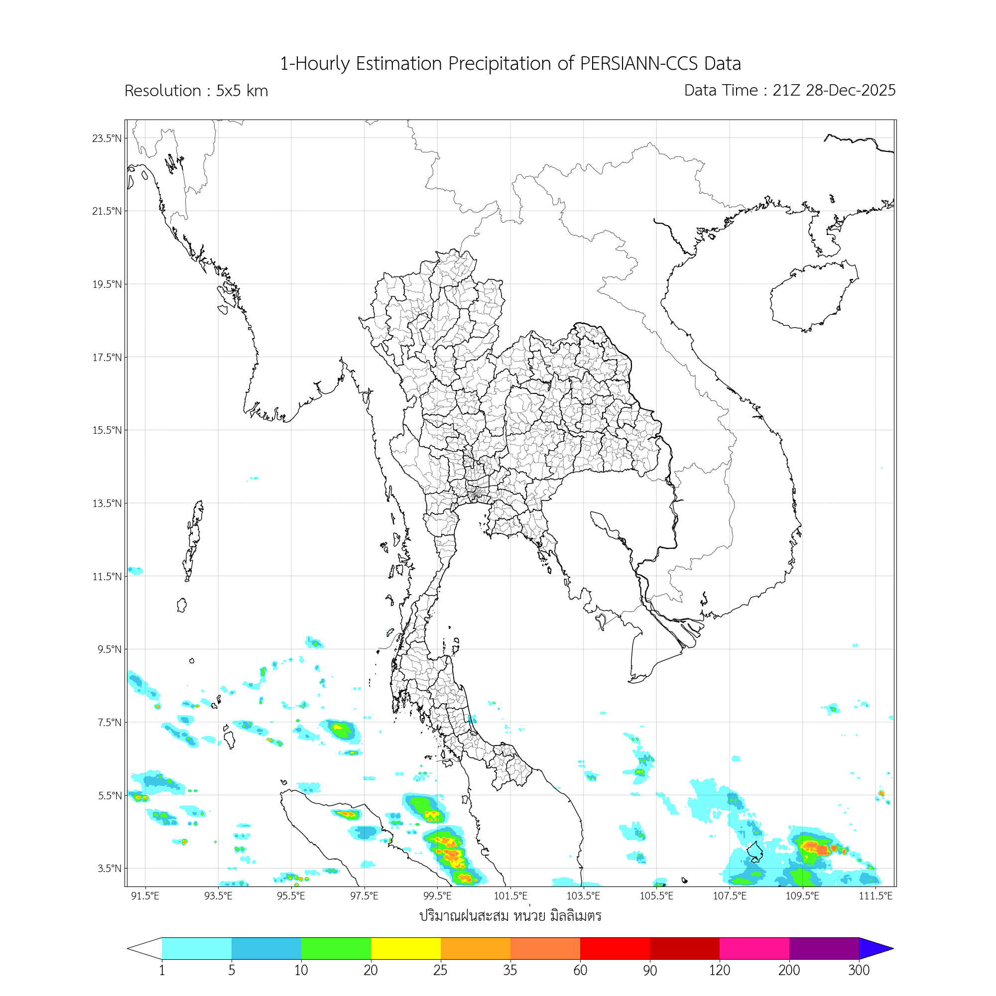 การประมาณค่าฝนจากดาวเทียม เมื่อวาน (28/12/2025)