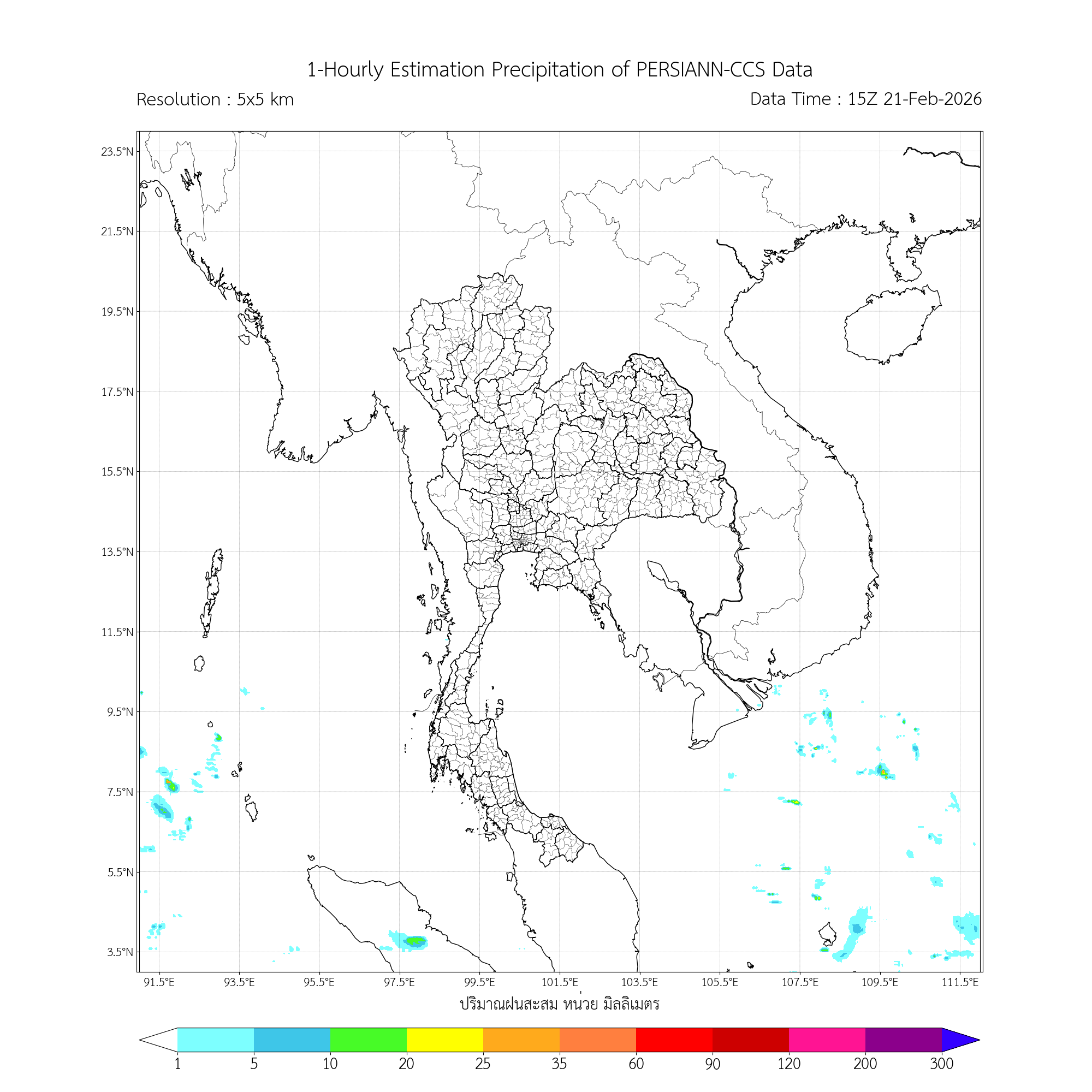 การประมาณค่าฝนจากดาวเทียม เมื่อวาน (21/02/2026)